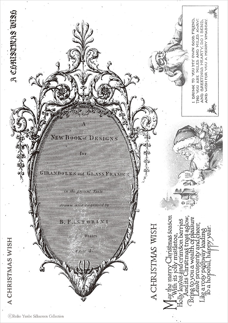 弓部玲子シルクスクリーン Christmas 飾り枠