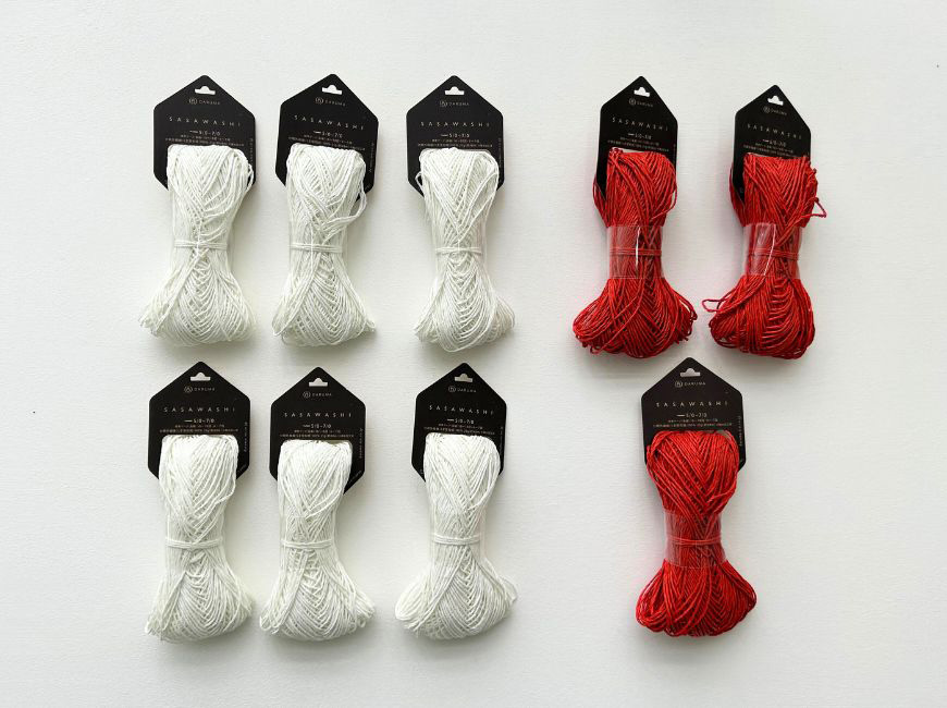和紙に標高1000m以上にのみ群生するくま笹を漉き込んだ糸。和紙ならではの自然な光沢の糸なので肌の色によく馴染みます。
