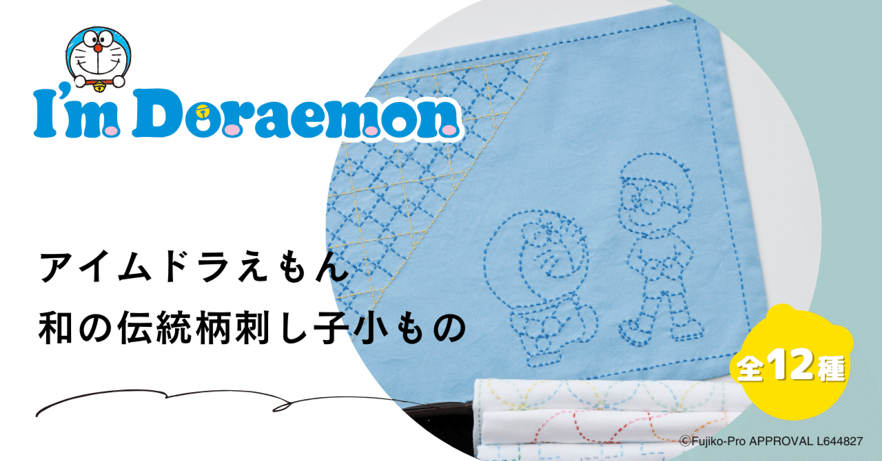 デザインいろいろ、ドラえもんと和の伝統柄の刺し子キット