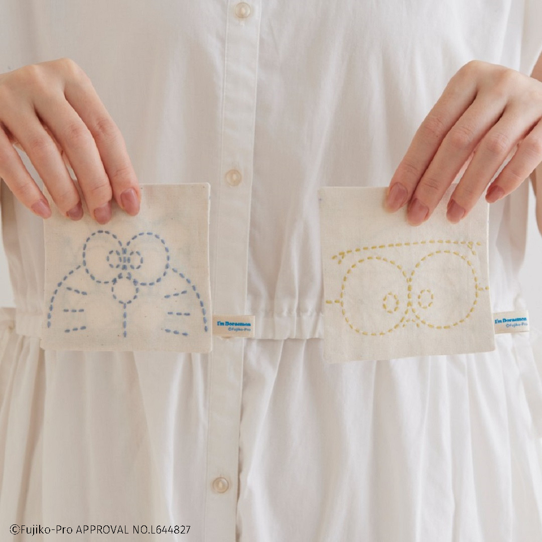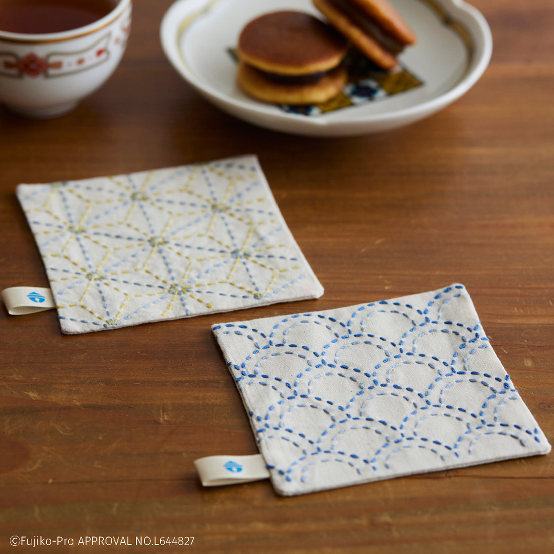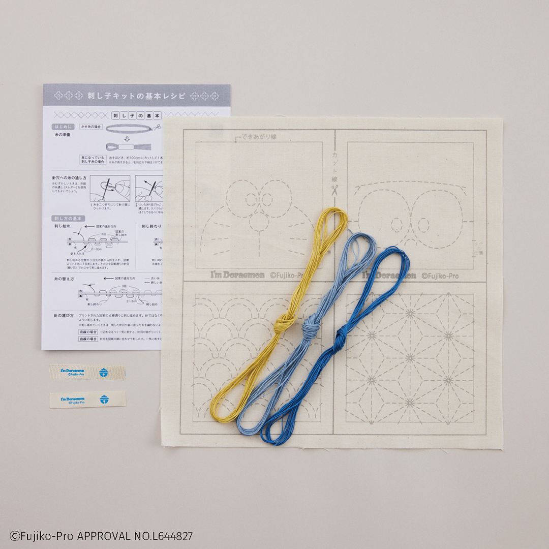 ドラえもん・のび太くんと日本の伝統柄「青海波」・「麻の葉」が楽しめる刺し子キットです。