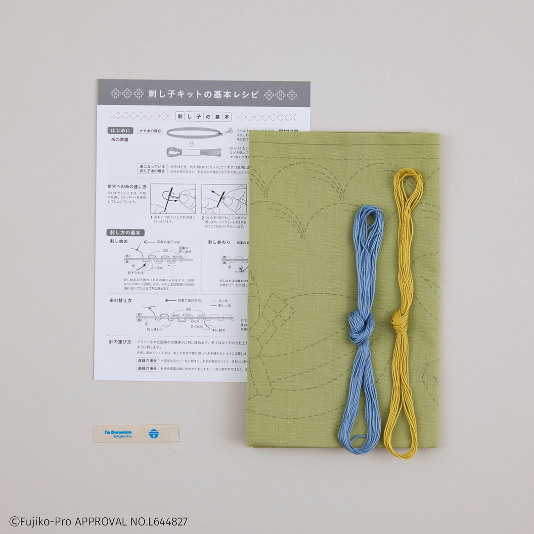デザインいろいろ、ドラえもんと和の伝統柄の刺し子キット