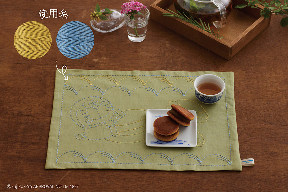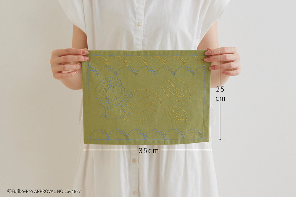 作品は約35×25cmのランチョンマットに仕立てます。(※洗濯前のサイズ。水につけると1割程度縮みます。) 刺し子の魅力は、なんといっても無心にちくちくするだけで簡単にできること。暮らしの中に取り入れて、カラフルな作品たちを愛でるのも楽しいひとときです。