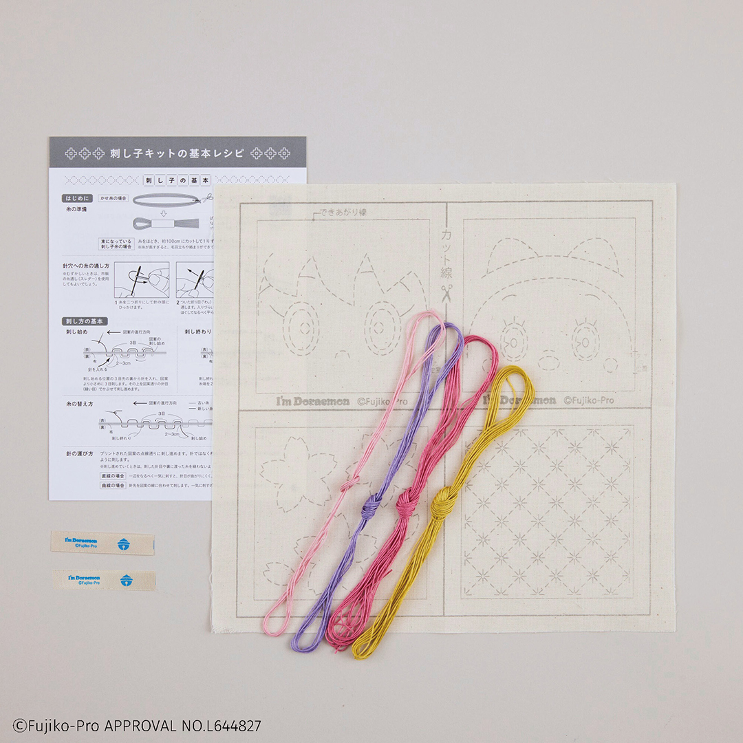 デザインいろいろ、ドラえもんと和の伝統柄の刺し子キット
