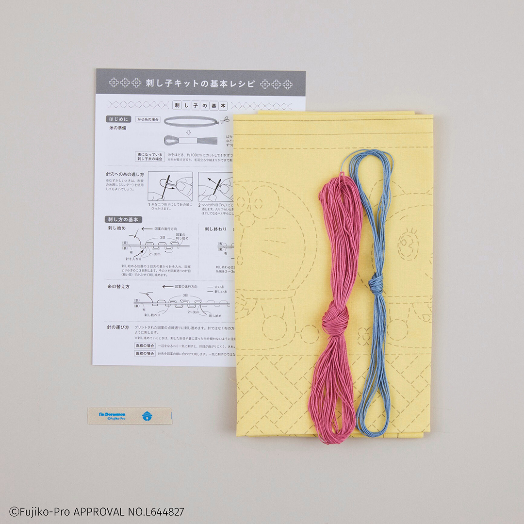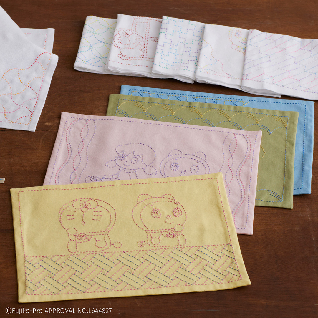 デザインいろいろ、ドラえもんと和の伝統柄の刺し子キット