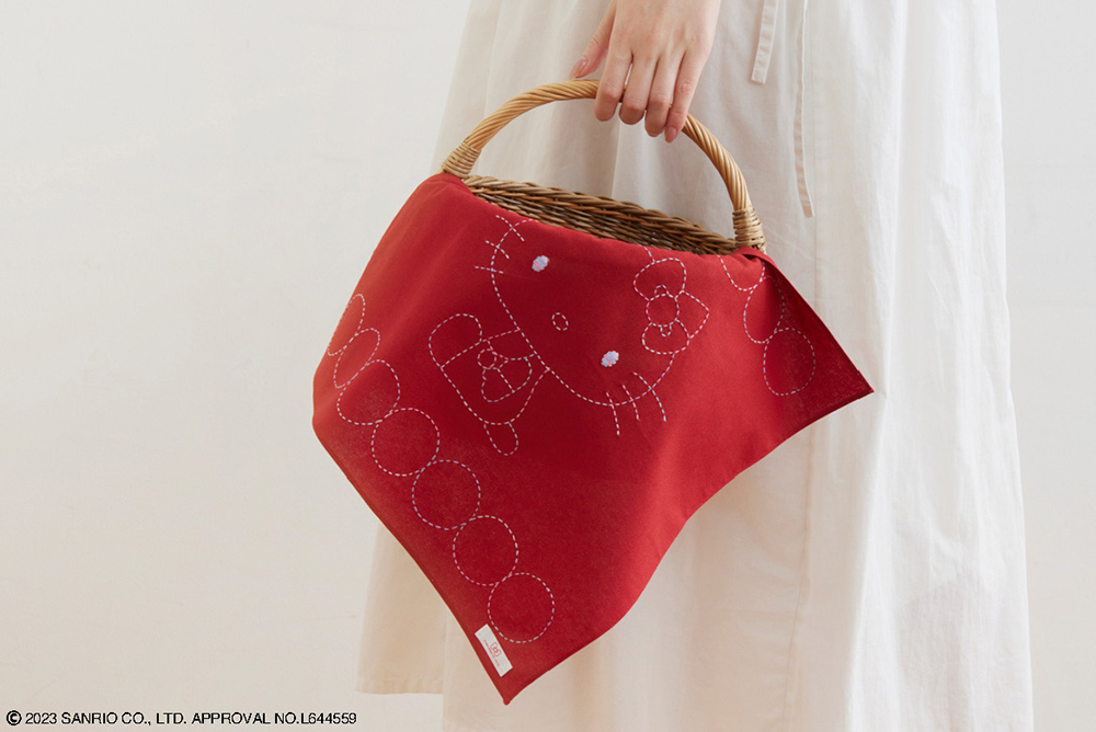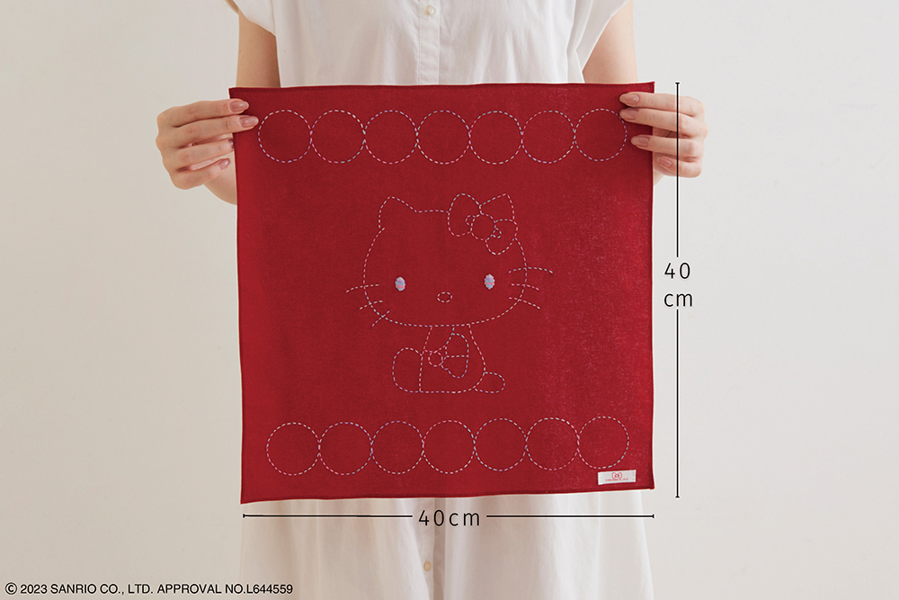 作品は約40×40cmのフリークロスに仕立てます(※洗濯前のサイズ。水につけると1割程度縮みます)。一般的なふきんよりも大きいので、お弁当を包んだり、目隠しとしてかごなどにかけたり、何かと使いやすい大きさです。