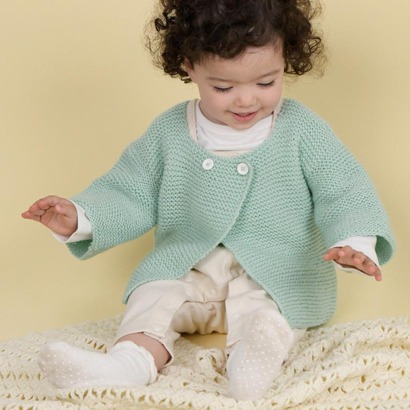 男女どちらにも似合うガーター編みのカーディガンは、ファンシーな子供っぽさがなく、シックで洗練された印象です。ママが欲しいのは、きっとこんなニットです。