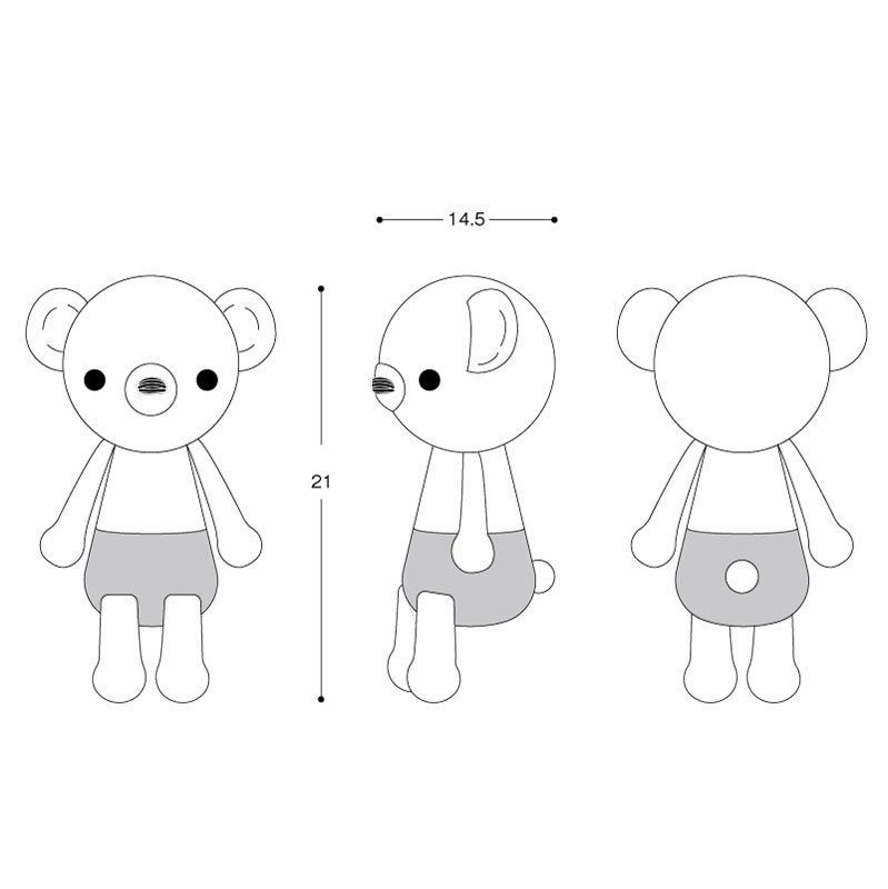 材料:《くまりん》 極太ウール糸 ベージュ 50g 青 10g、並太ウール糸 白 1g。直径13.5mm の足つきボタン(黒)2個。 《くま田さん》 内藤商事 ガザールコットン25 ベージュ(3445)10g 黄(3417)・白(3432)・濃いピンク(3458)各1g、ウールボックスKM 青(171)5g 灰味ベージュ(173)2g 《共通》 25 番刺しゅう糸(茶色)少々。手芸綿 適宜