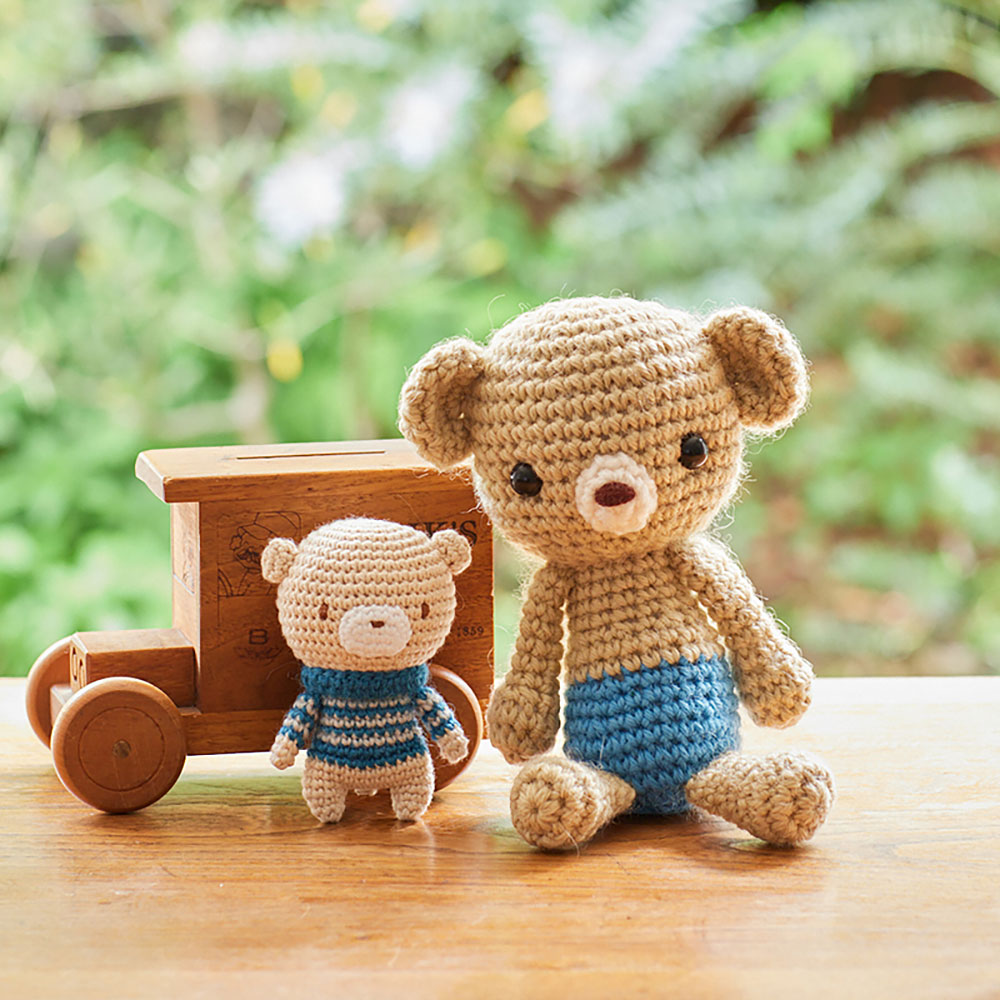 ニットマルシェの連載「あみぐるみ手芸部」で事務方を務める「くま田さん」(vol.27掲載)とその大先輩で、現在はあみぐるみ手芸部の顧問の「くまりん」(創刊号掲載)。かわいい先輩・後輩の2匹そろったレシピです。