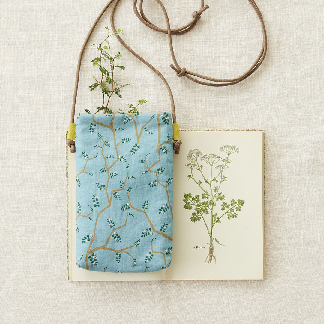 ジグザグに伸びた枝と小さな葉っぱがかわいい観葉植物(リトルベビー)をイメージした“little baby”のプリント柄のスマホショルダーのレッスンです。