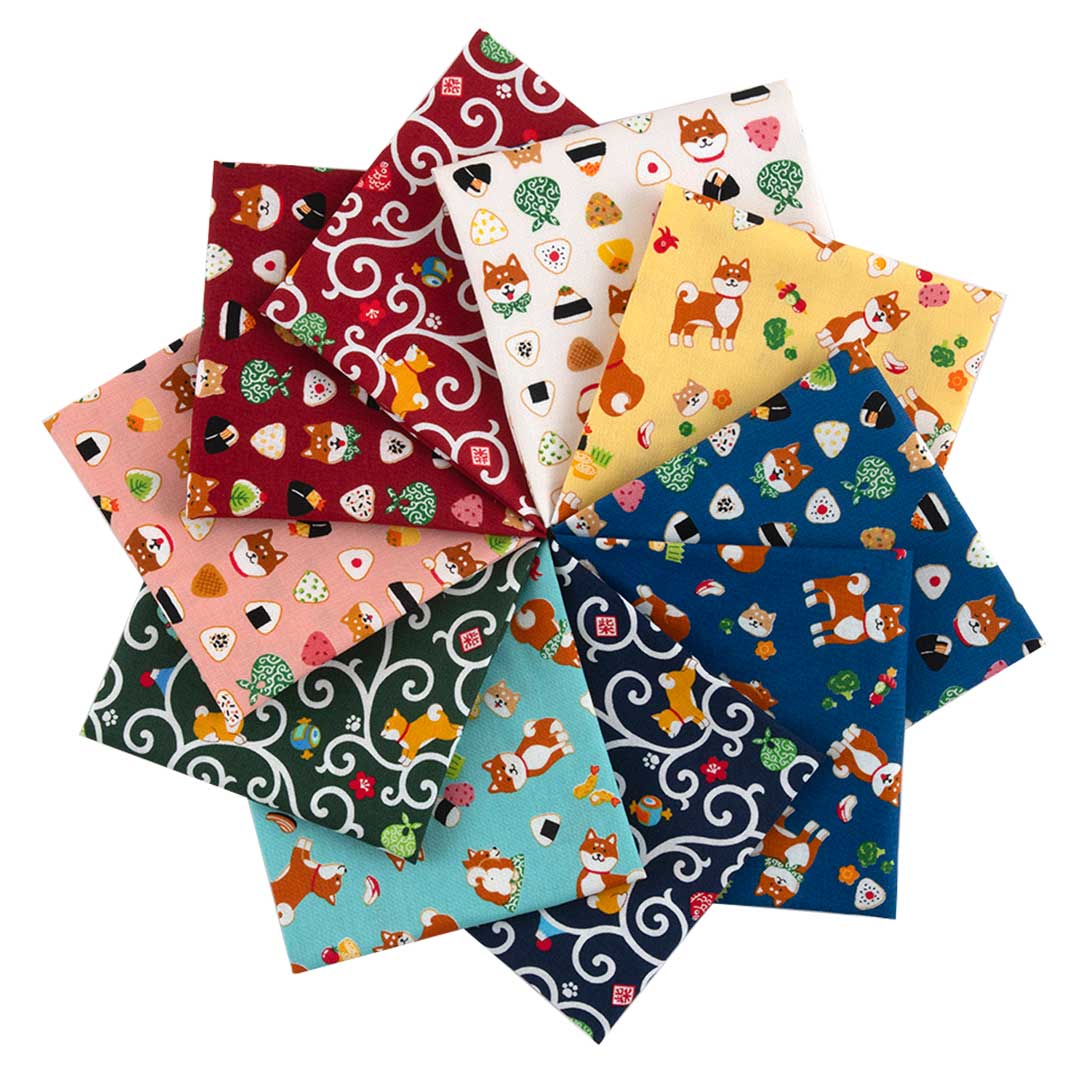 可愛い柴犬と、ご当地おにぎりや唐草模様などを組み合わせた、ユニークなカットクロスセットです。ポーチやバッグなど、親子でお揃いのアイテムを作っても素敵。