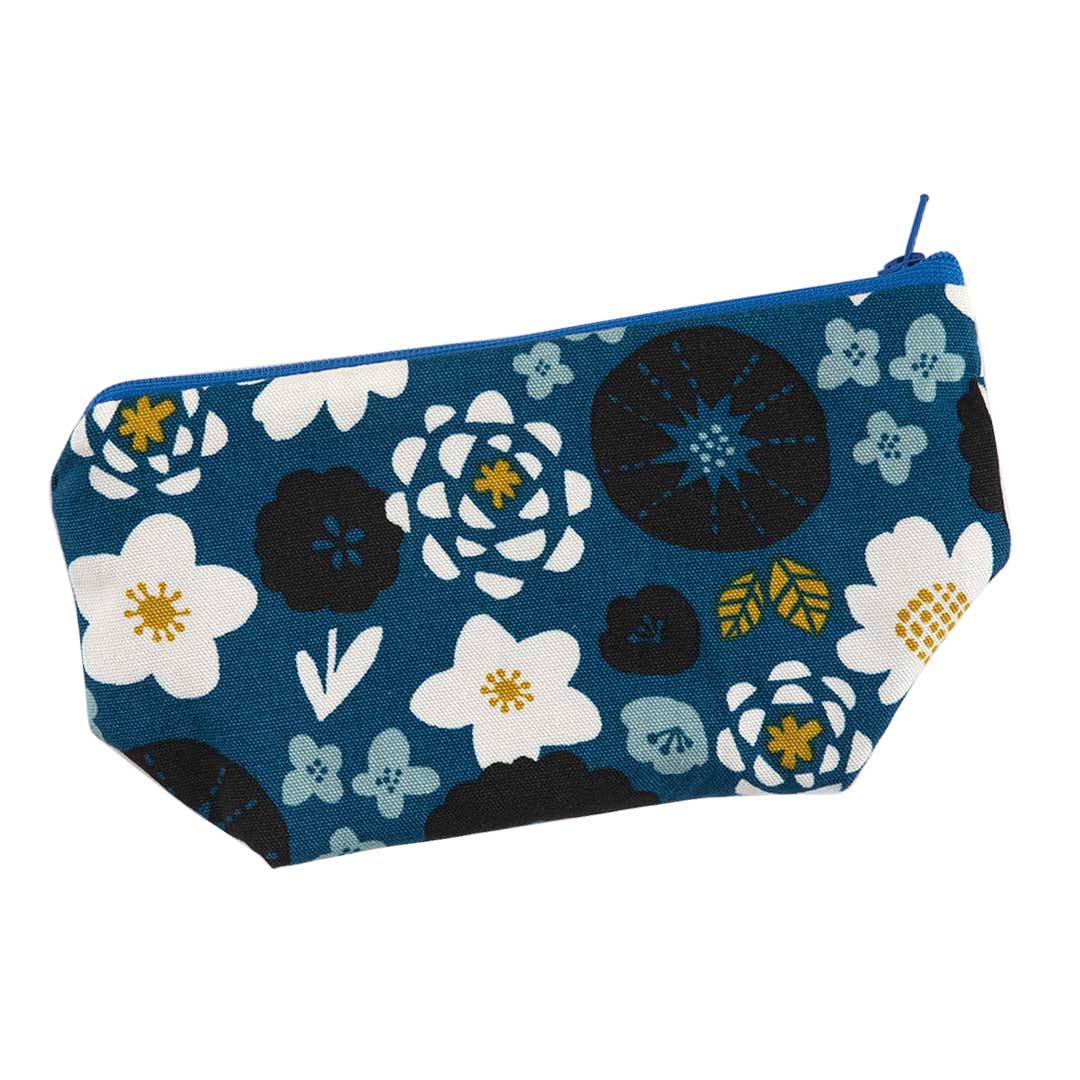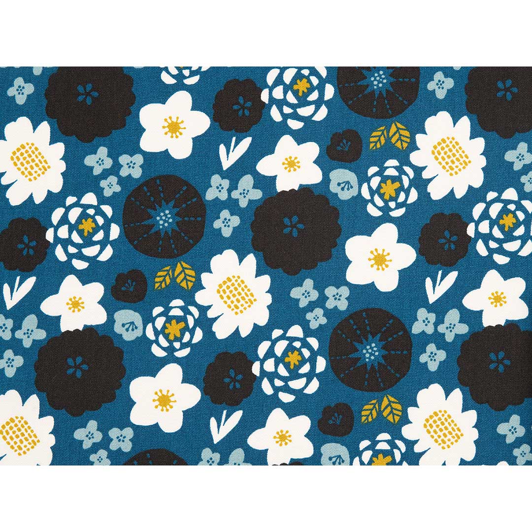 [オックス] ブルー地に白と黒の花を描いた北欧風花柄プリント布。バッグや小物作りなどに向いた、やや厚 手のオックス地です。
