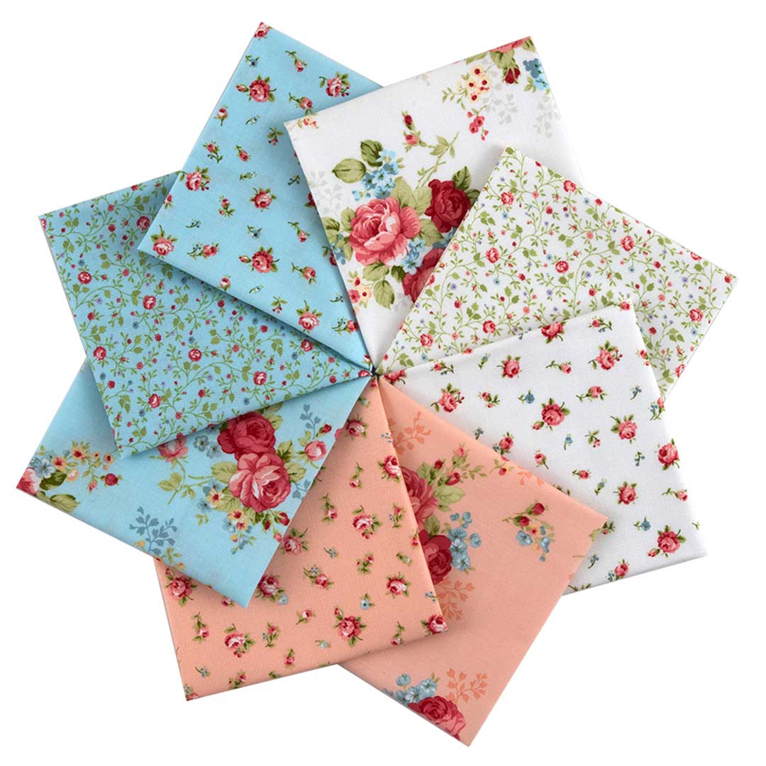 [USA] 優しい色合いで描いた、大小のバラ柄プリントを集めました。小物作りに最適なカットクロスセットです。