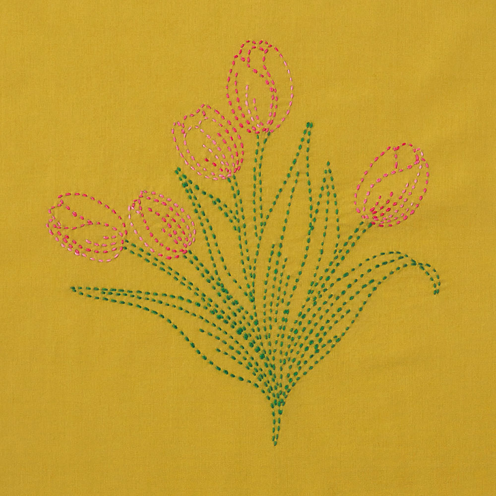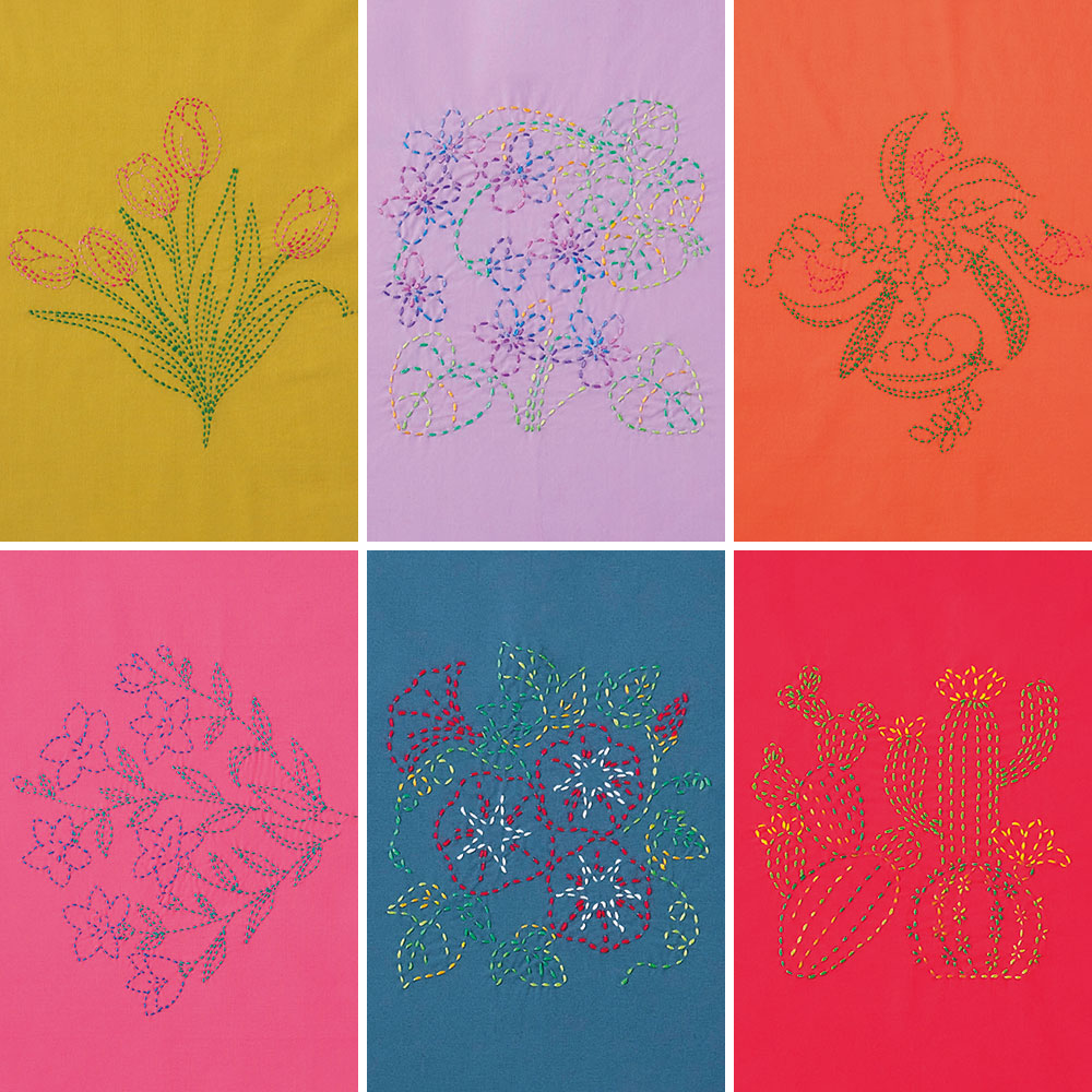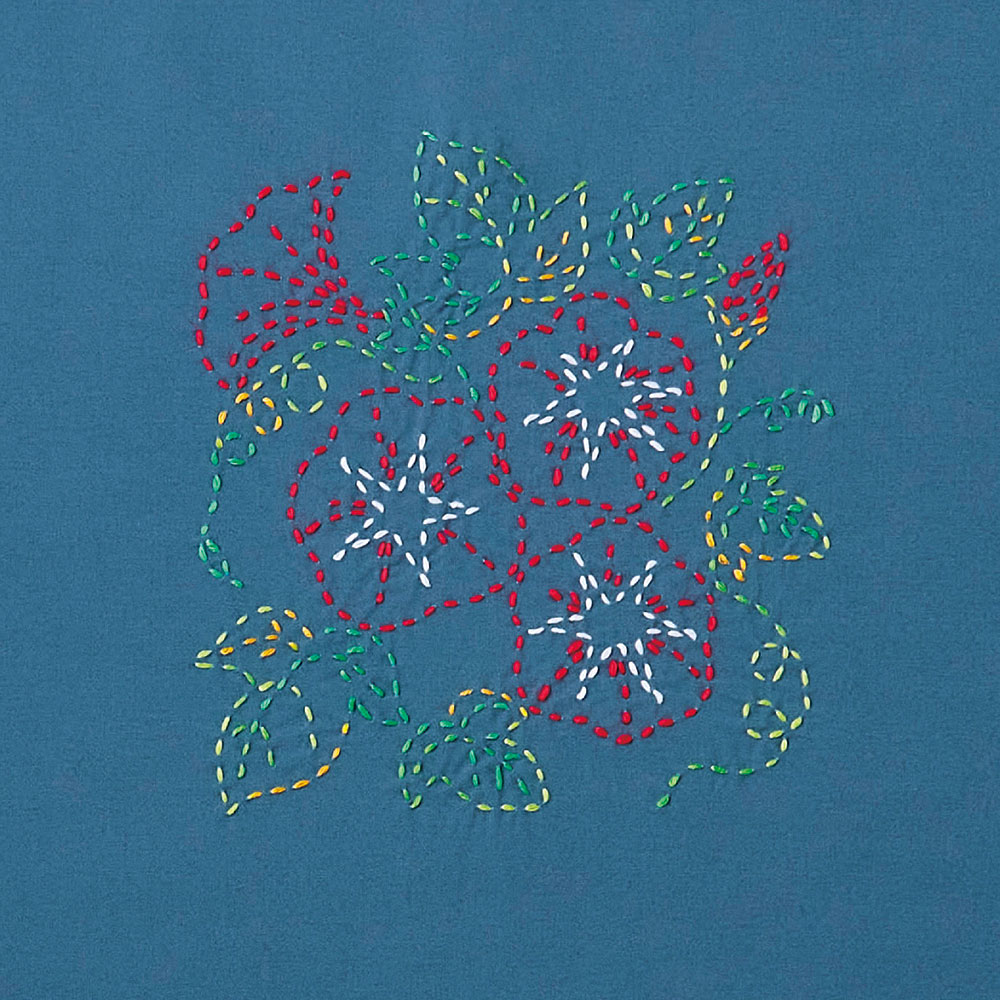 今から約500年前に寒い地域で衣服などの補強の目的で始まったとされています。現代では機能性よりも模様を楽しむ傾向にあり、運針縫いという簡単な技法で縫うこともできることから子供から大人まで、高齢者のリハビリや子供の集中力を鍛えるといった面でも人気が高いジャンルです。