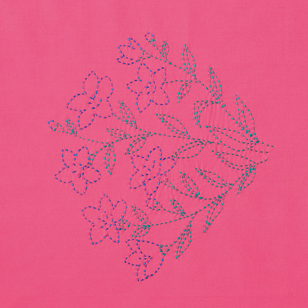縫製済みの風呂敷に図案が印刷済みなのですぐに刺すことができ、刺し終わったら仕立ても必要なく使えます