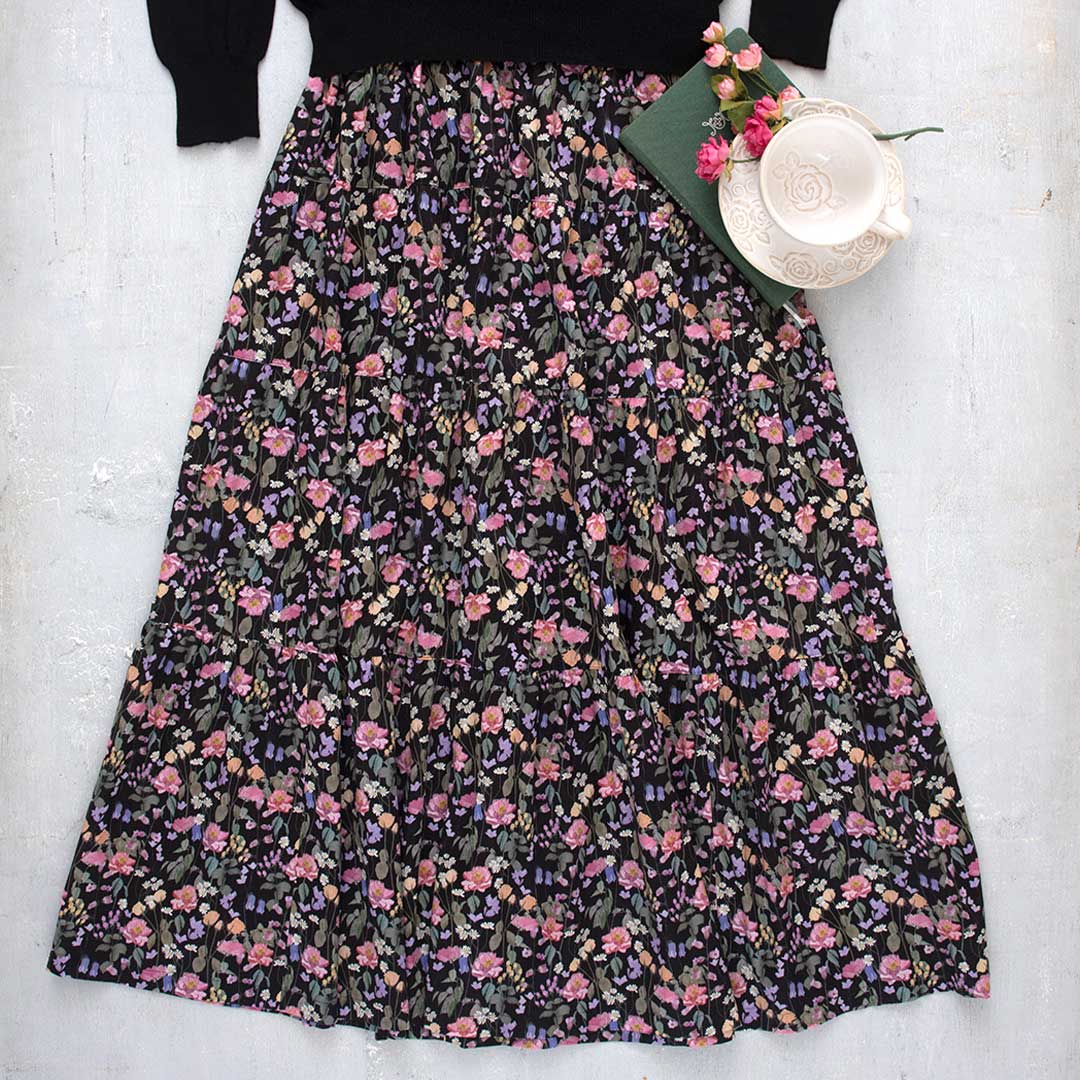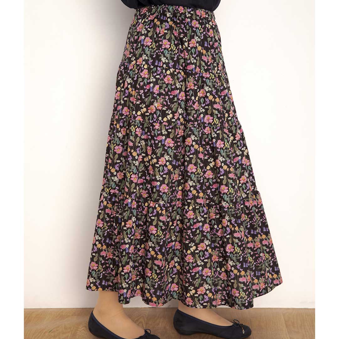 【限定30・キット作り方つき】高さの異なる4段をバランスよく合わせたティアードスカートです。コーディネート次第で幅広い着こなしが楽しめます。ソーイング初~中級の方にお勧め。