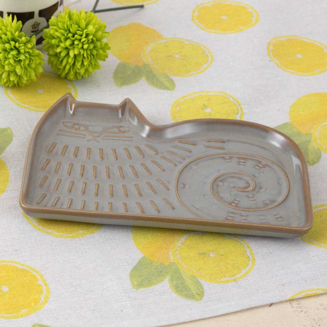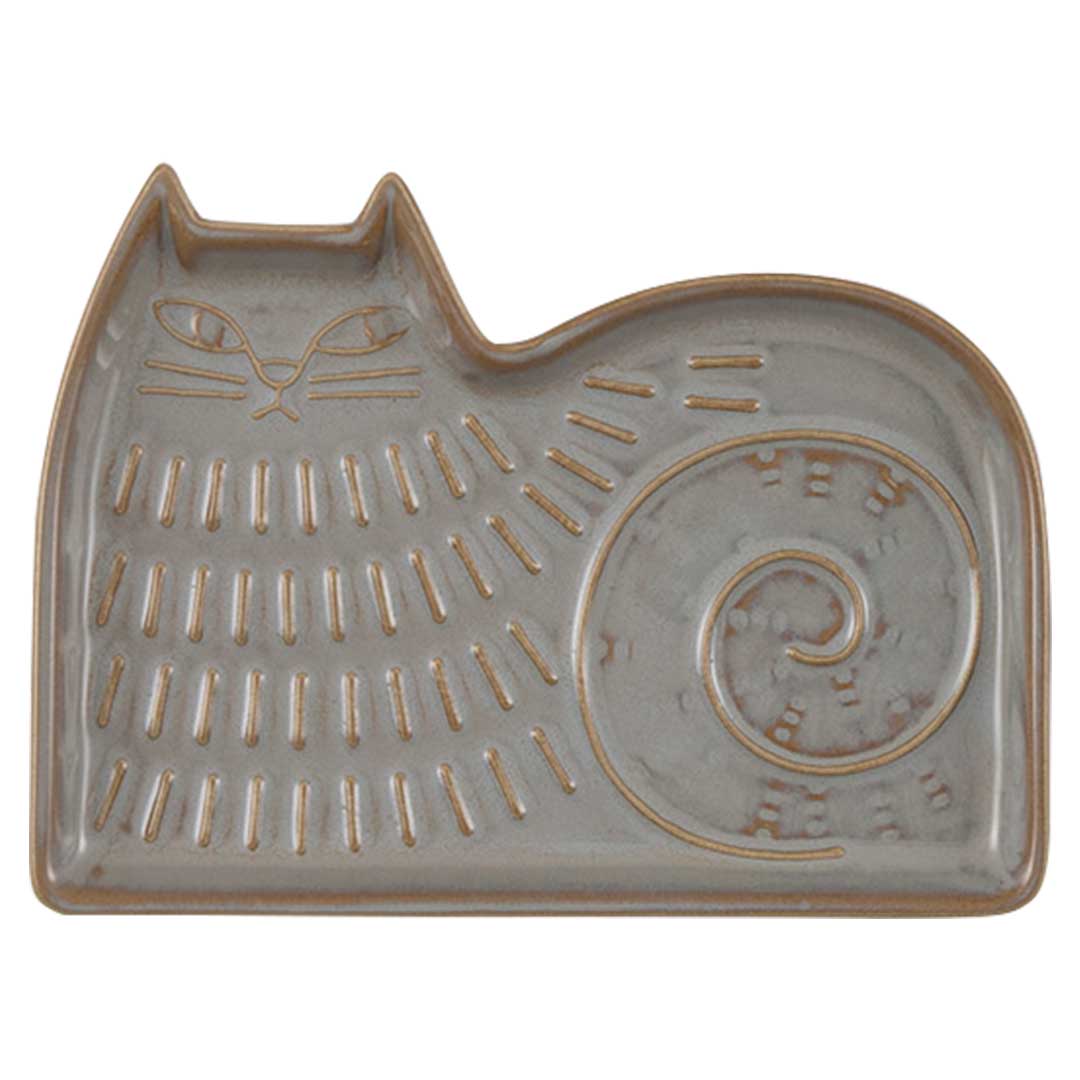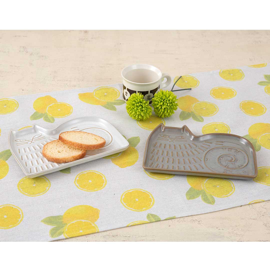 【完成品】個性豊かなネコをモチーフにした、レリーフ模 様のプレート2色です。パンやお菓子を置いて、食事やお茶の時間が楽しくなりそう。