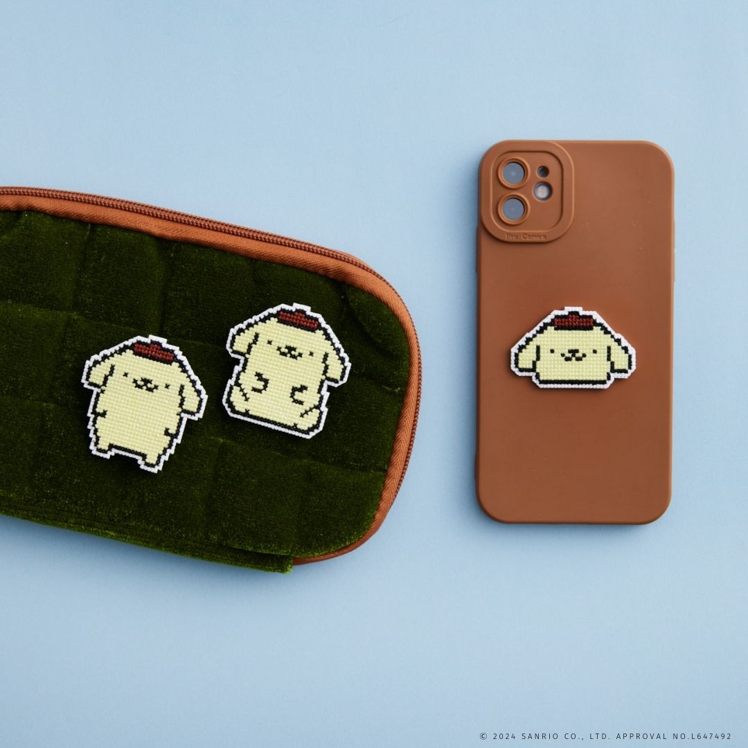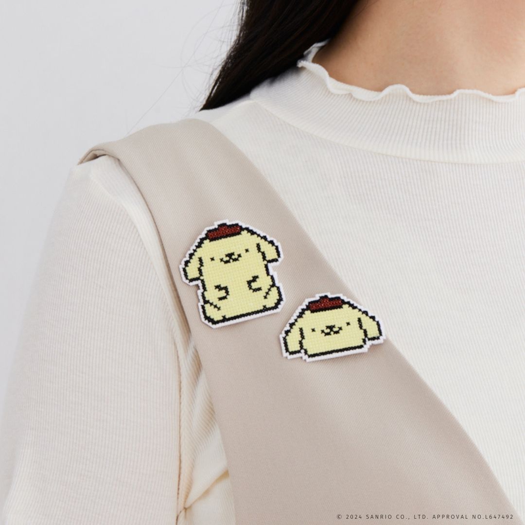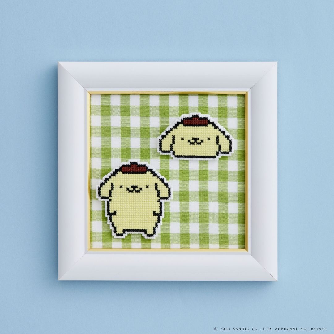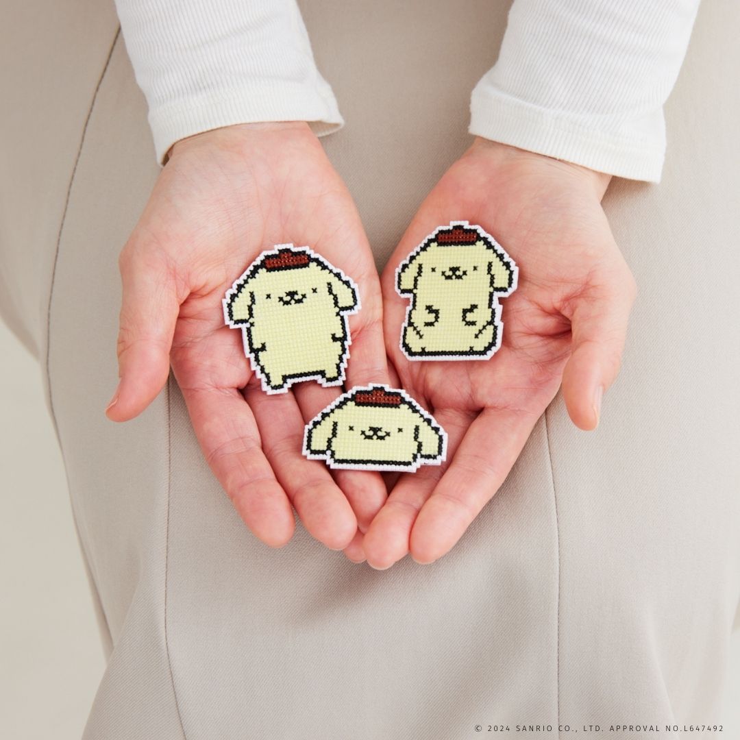 クロスステッチで、ポムポムプリンのブローチが3つ作れるキットです。