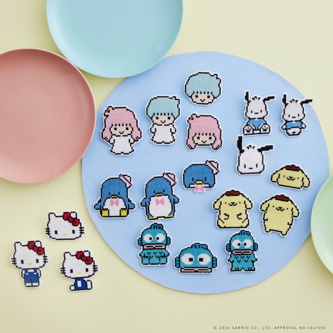 デザインいろいろ、サンリオキャラクターズのクロスステッチドット絵ブローチキット