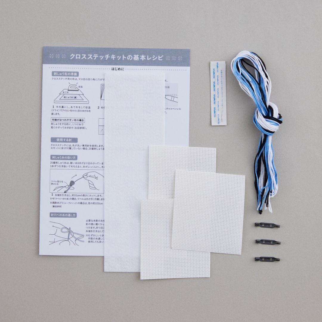 - ・25番刺しゅう糸(綿100%・白、青、黒)