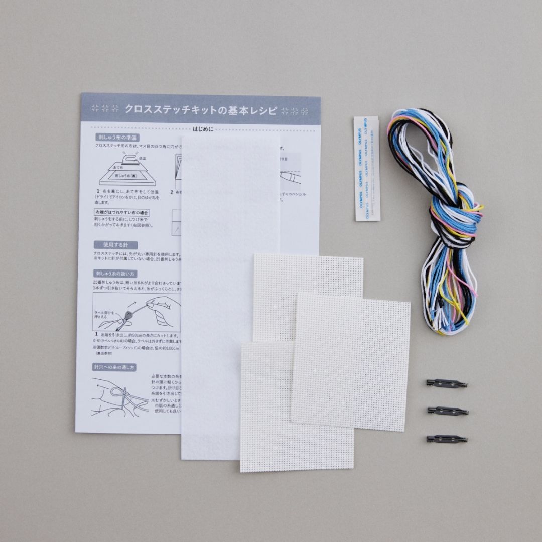キットにはクロスステッチ図案や作り方とは別に「クロスステッチキットの基本レシピ」がついてきます。刺しゅう布の準備から基本の刺し方、作品の仕上げ方まで、イラスト入りでていねいに解説しました。疑問点をクリアにしてから、刺し進めることができます。