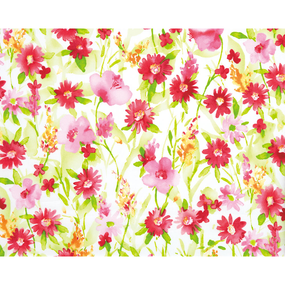 [ローン]水彩タッチで描かれた、華やかな赤やピンクの花がゆらめくデザイン。薄手のローン地なので、ワンピースやスカートなどにもおすすめです。