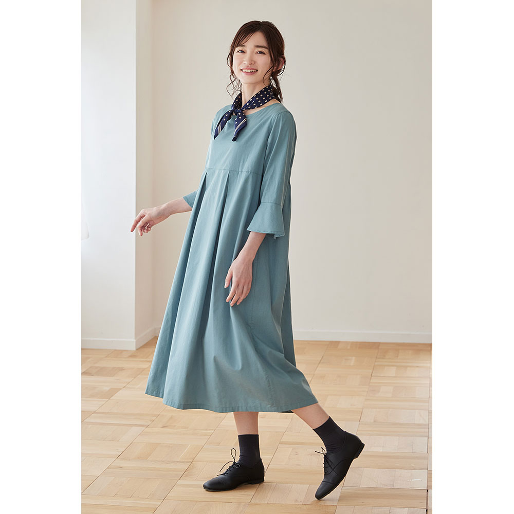 切り抜いてそのまま使える便利な型紙。ハイウエスト切り替えで前はタックですっきりと、後ろはギャザーでゆったりとしたデザイン。袖口にかけて広がるベルスリーブが女性らしく素敵な一枚ができ上がります。パフスリーブのアレンジパーツ付き。S・M・L・LLサイズ。