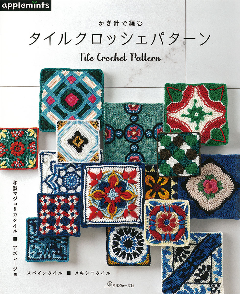 「タイル」をイメージした10cm角、15cm角のかぎ針編みのパターン集。マジョリカタイル、アズレージョ、スペインタイル、メキシコタイルの4種類のタイルに分けて紹介。眺めているだけでも楽しめる趣向をこらした作品を数多く掲載。応用作品としてバッグ・ポーチ・ピンクッションなどもご紹介。