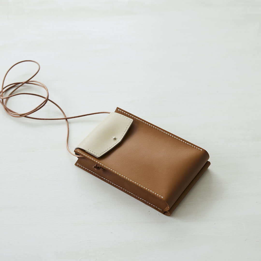 日常使いできるミニマルで洗練されたデザインが魅力の、.URUKUSTさんの革小物がご自宅で作れるキットです。 上質な牛革でバイカラーのミニポシェットを作ります。