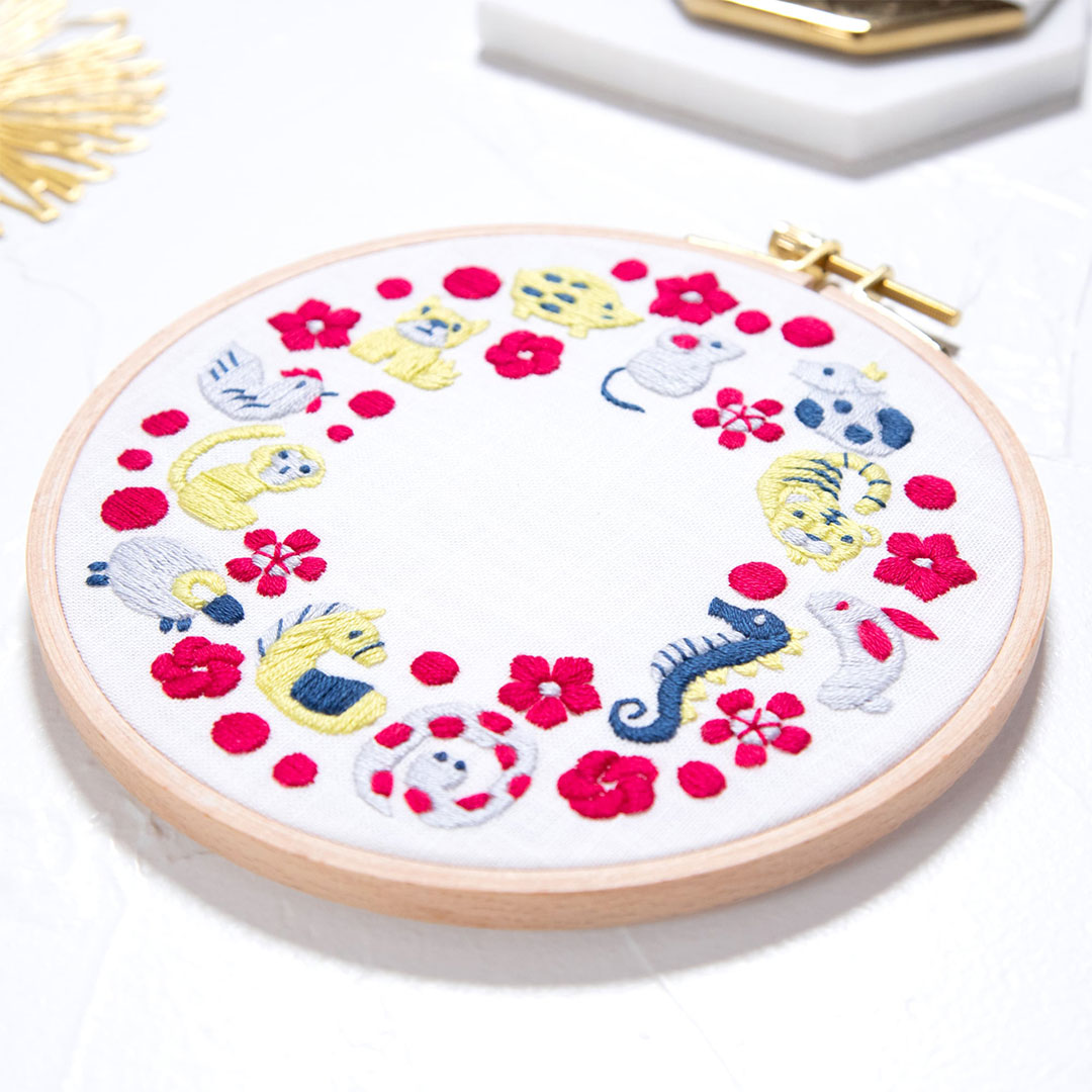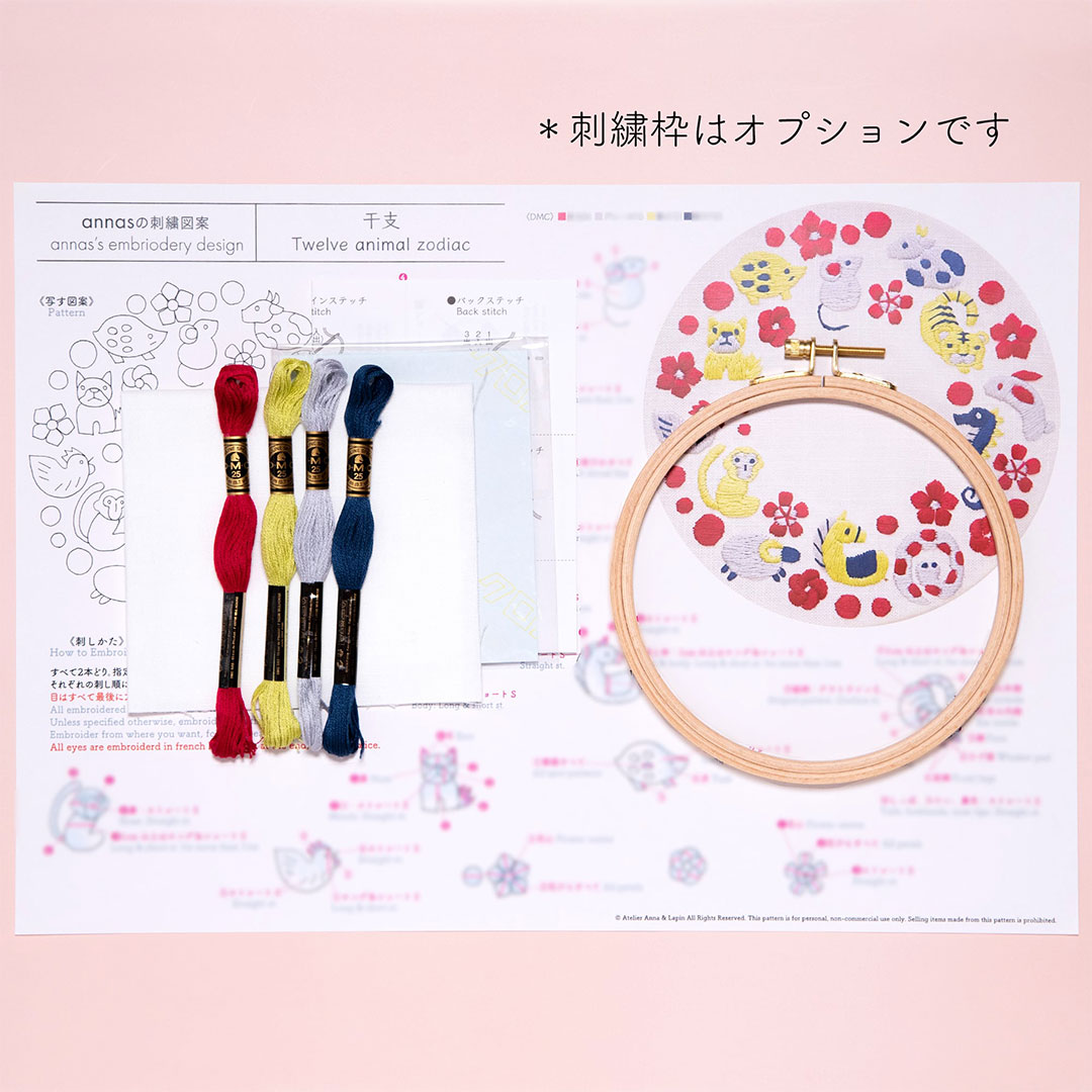 〔別途、ご用意いただくもの〕刺しゅう枠、刺しゅう針、はさみ、縫い針、縫い糸