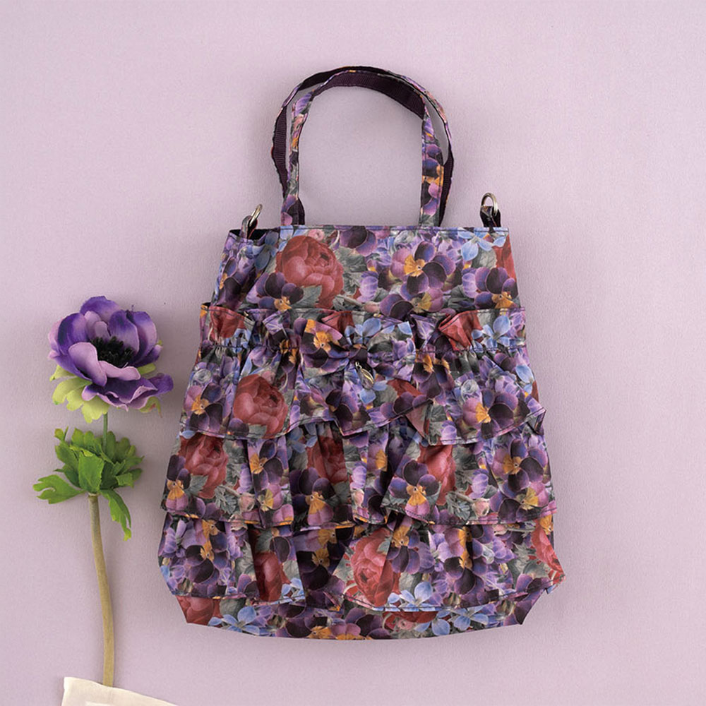 【完成品】内側にも無地のはっ水生地を使用した、軽量仕立てのポシェット2種。前後の大きなポケットも便利 です。前側のさりげないリボンとチャームもアクセントになっています。。