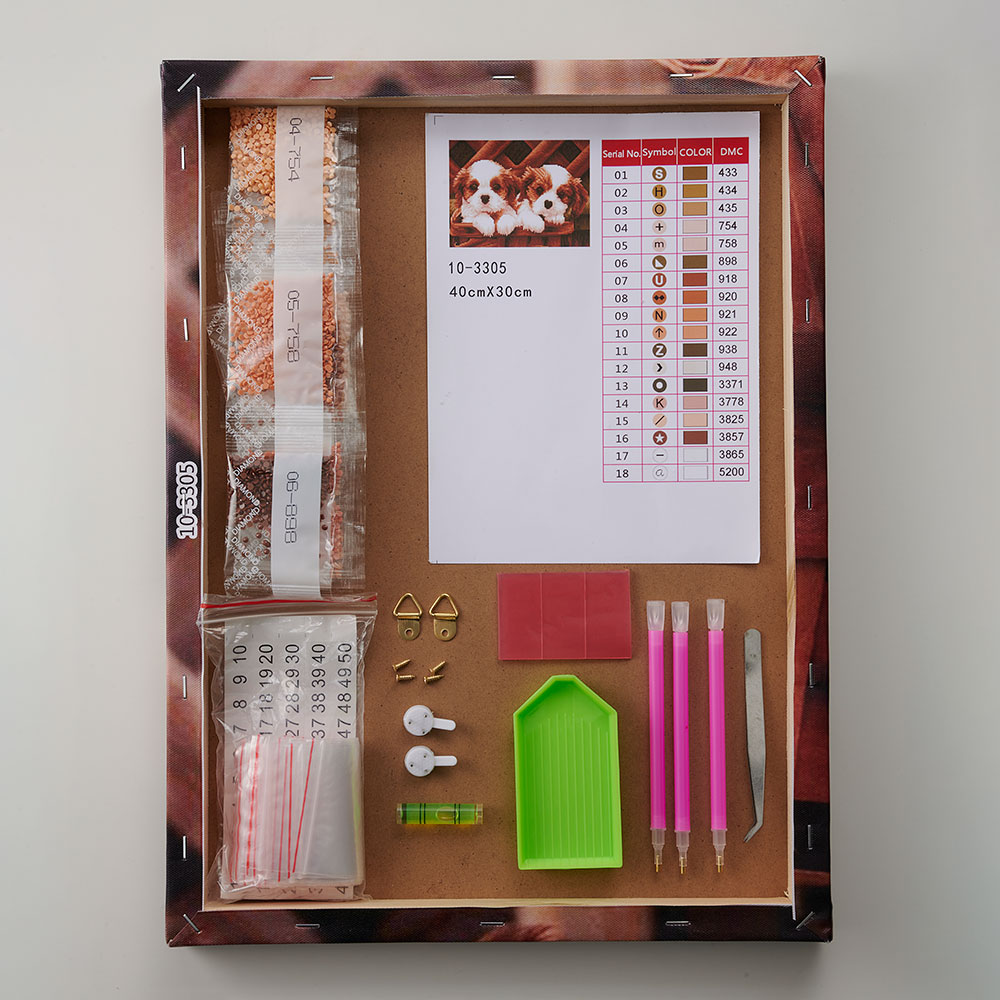 フレーム付きキャンバス、ビーズ、ビーズチャート、専用ペン、専用トレー、ピンセットなど