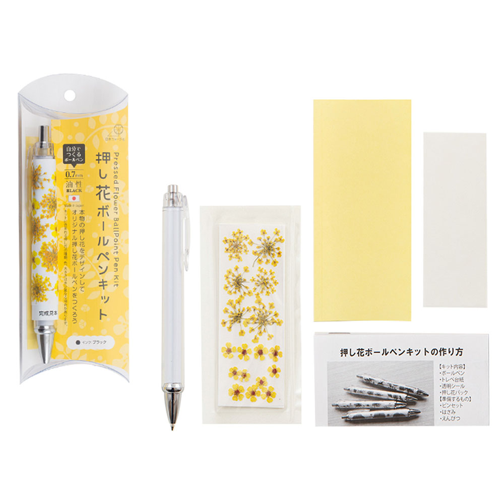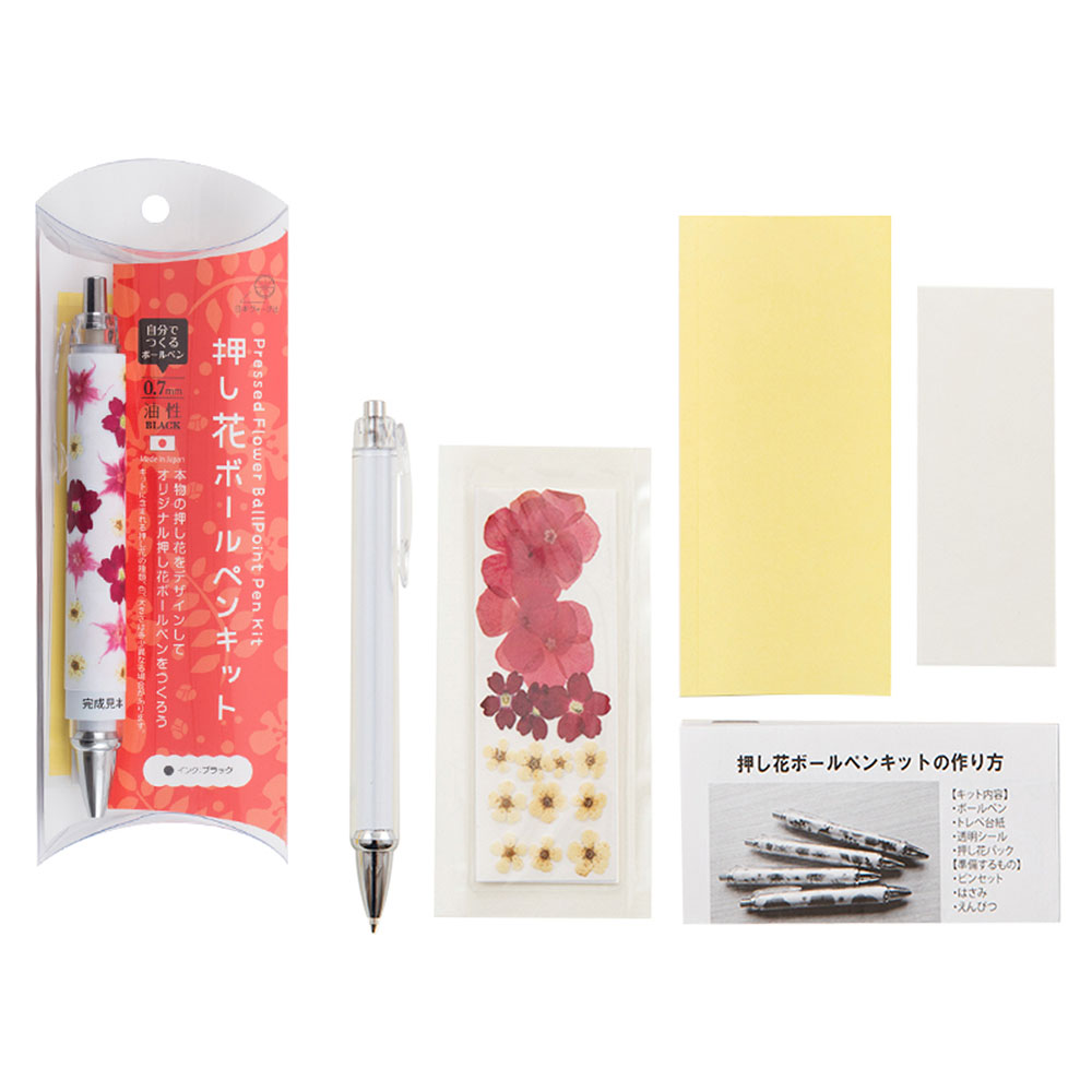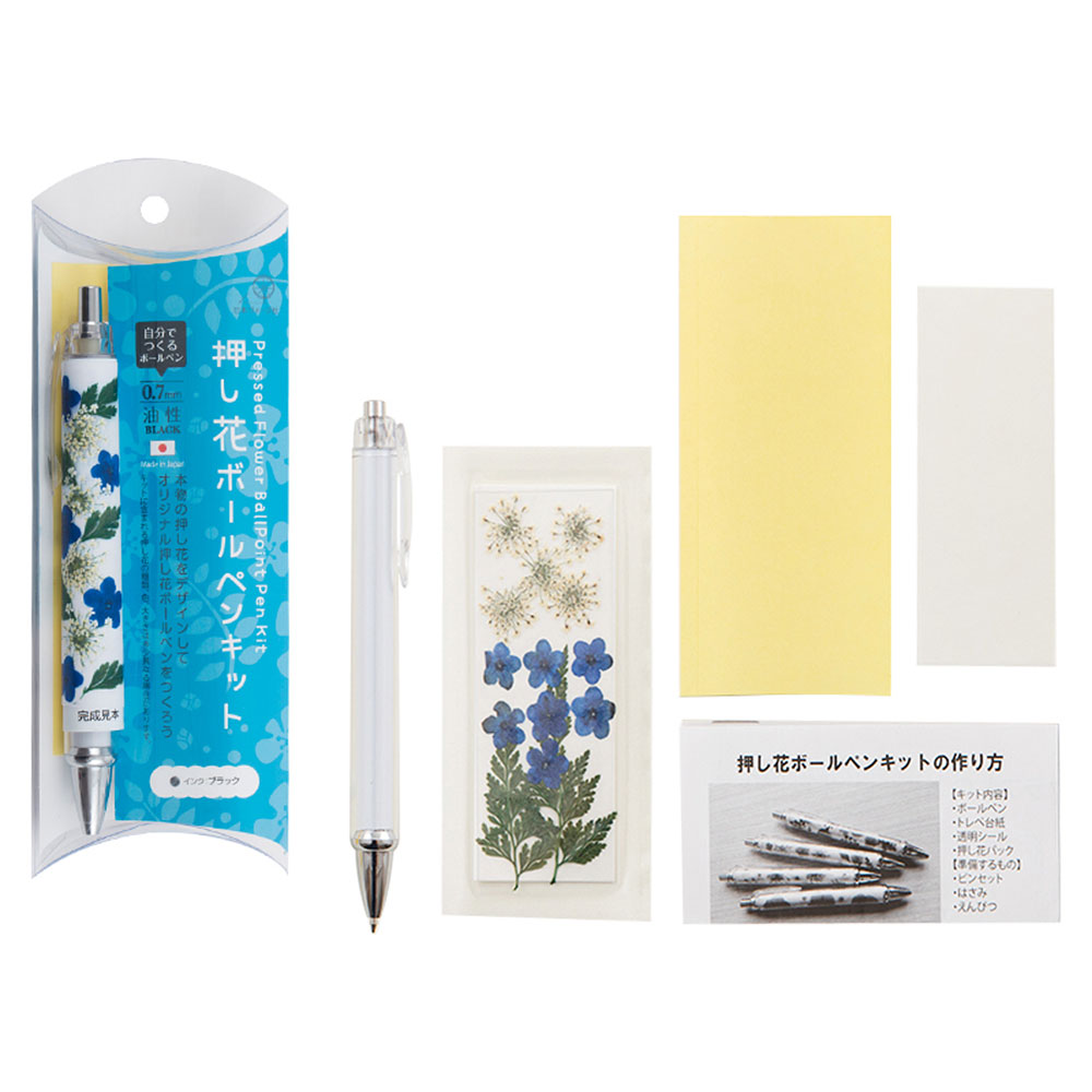 作り方はカンタン。セットされている台紙に付属の押し花を並べて、透明シールをかぶせるだけで、世界で一つだけのボールペンの出来上がりです。