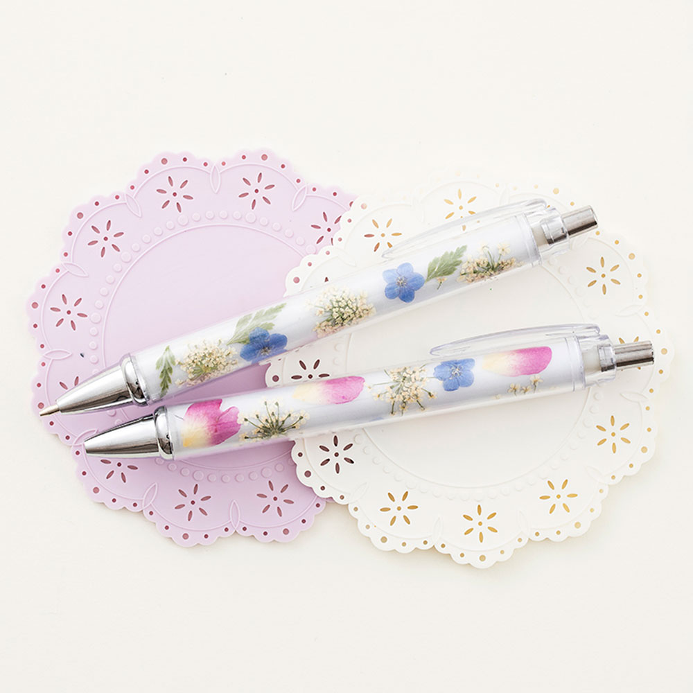 違った色の押し花を組み合わせればオリジナルカラーの押し花ボールペンが楽しめます。