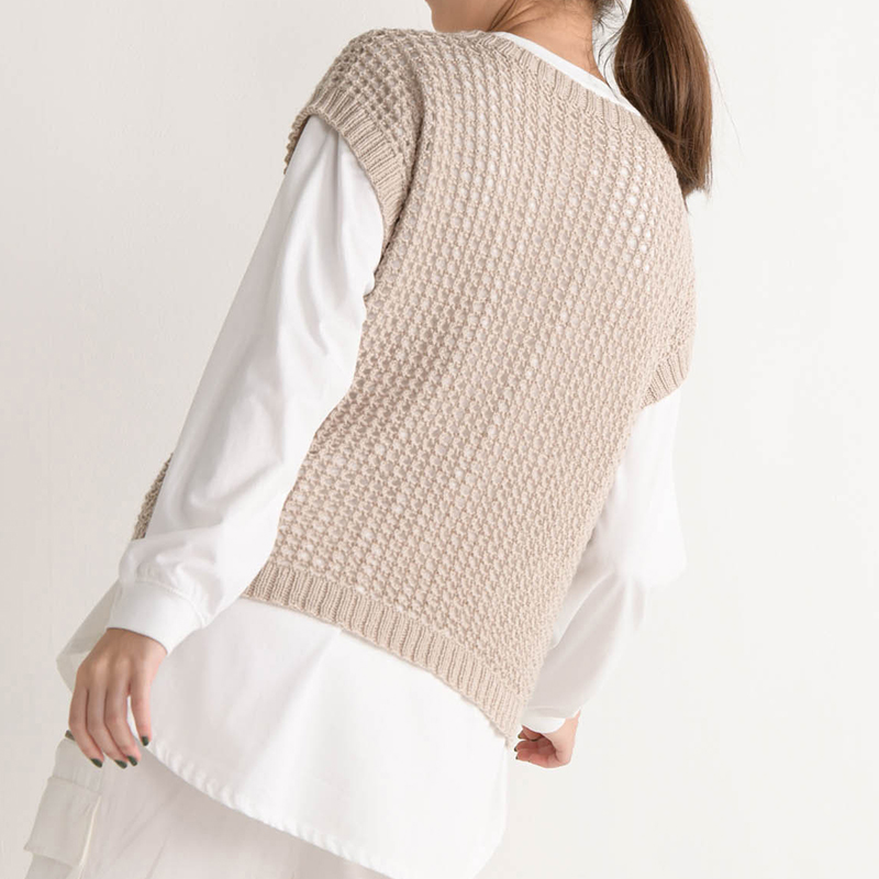 今年流行りのアイテム、メッシュのニットの色や形をアレコレ変えて。