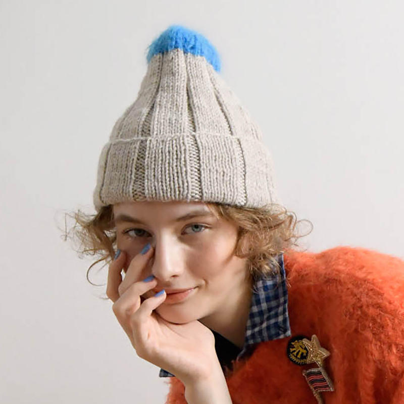 シンプルな毛糸の帽子は、冬の必需品。ちょっと寝坊して髪が決まらない朝だって、さっとかぶればパパッと決まります。模様編みの配置とトップのモヘアがアクセントのデザインは性別を選ばず、使い勝手も良し。プレゼントにもぴったりです。