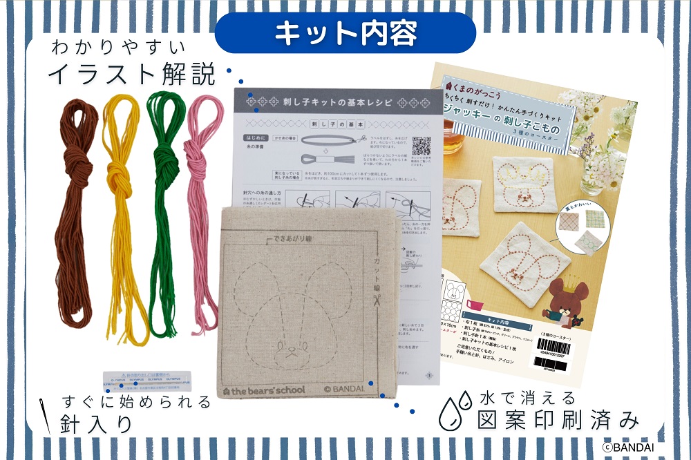 くまのがっこうの主人公「ジャッキー」が刺し子のキットになりました。