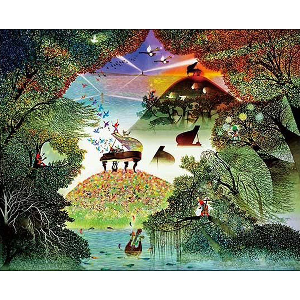 こびと達が奏でる音楽が風に乗って優しく草花を揺らす。鮮やかな色彩が溢れる光と影と音楽のシンフォニー。