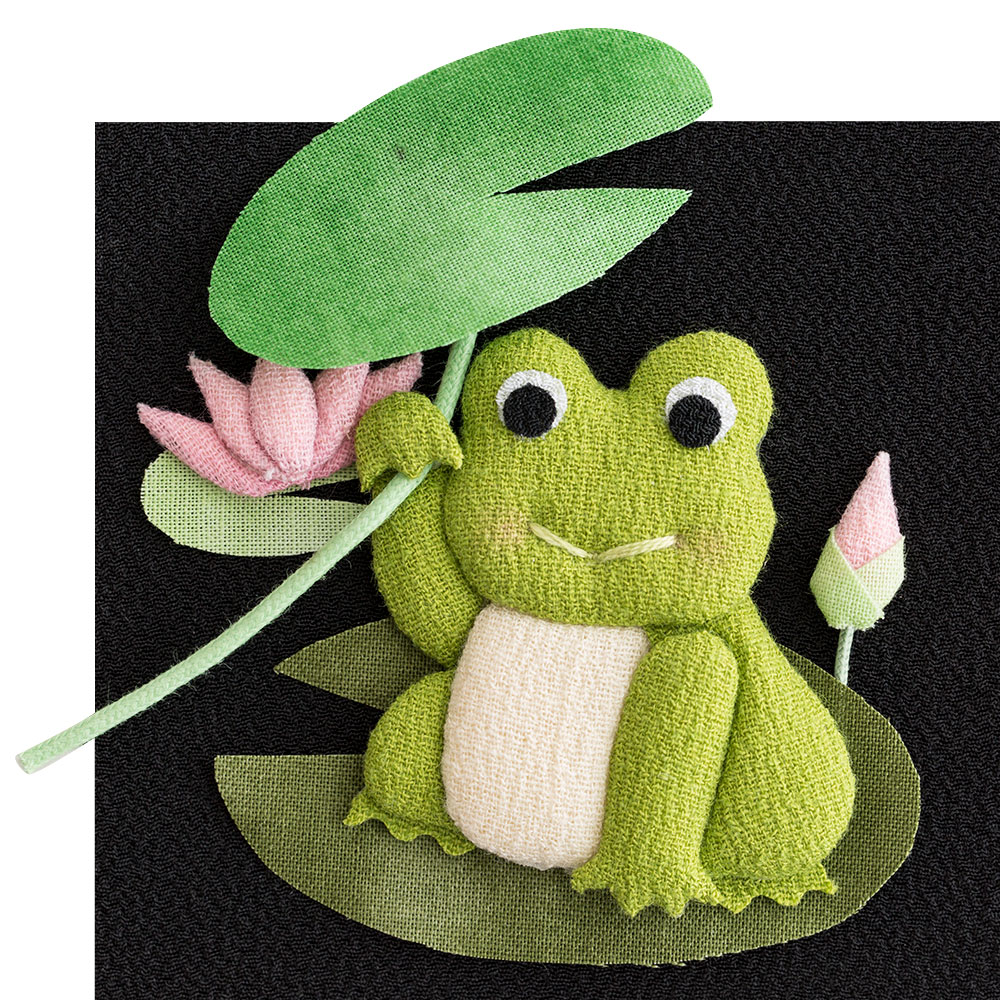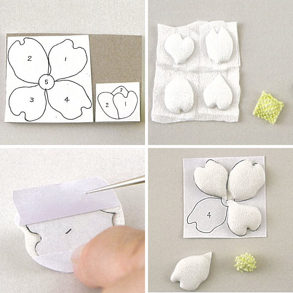 伝統的な押し絵の技法をもとに著者が考案した、スポンジつきの厚紙にちりめん布を貼るだけで、かんたんで見栄えのする半立体の押し絵を作ることができる技法です。