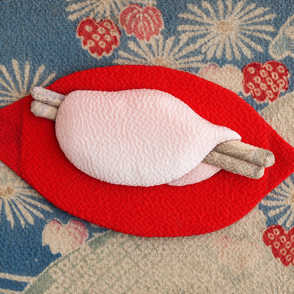 スポンジつきの厚紙にちりめん布を貼るだけで、簡単に見栄えのする半立体の押し絵ができ上ります。