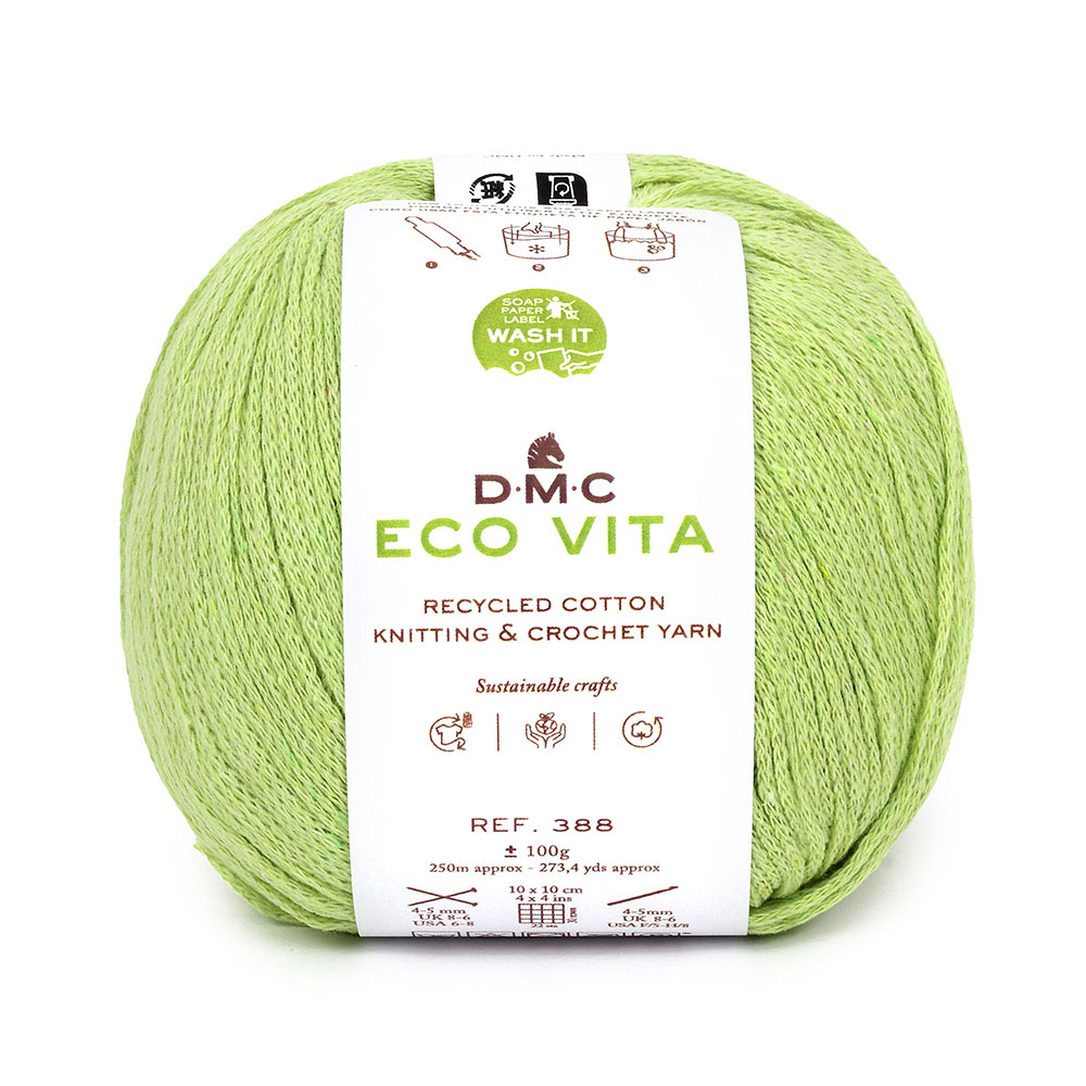 リサイクルコットン80%とその他リサイクル繊維20%からなる環境にやさしい糸。