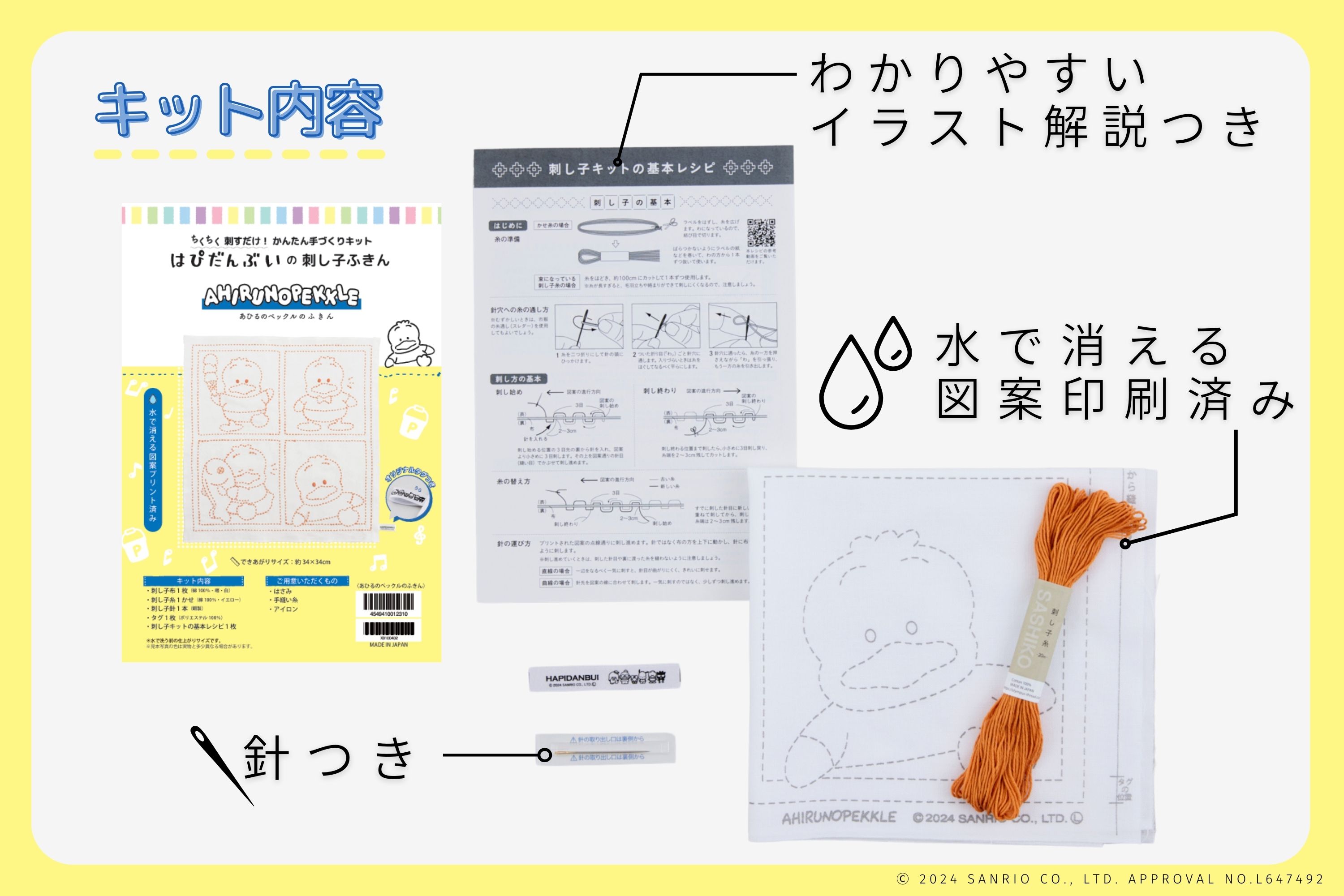 サンリオの個性あふれる6人の男の子キャラクターたち「はぴだんぶい」の魅力が詰まった刺し子キットです。