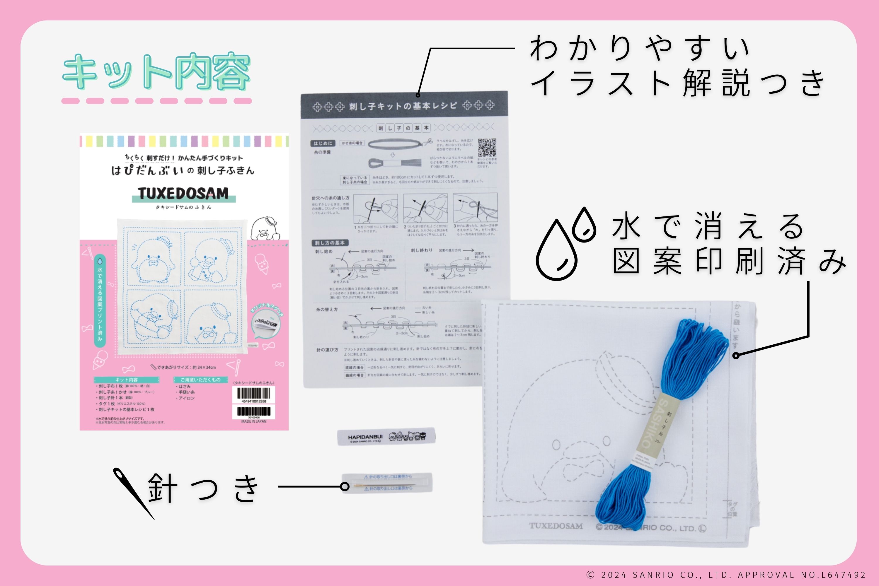 サンリオの個性あふれる6人の男の子キャラクターたち「はぴだんぶい」の魅力が詰まった刺し子キットです。