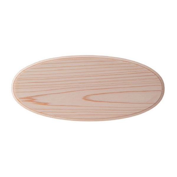 縁が面とり加工された、高級感のある細長い楕円形プレートです。