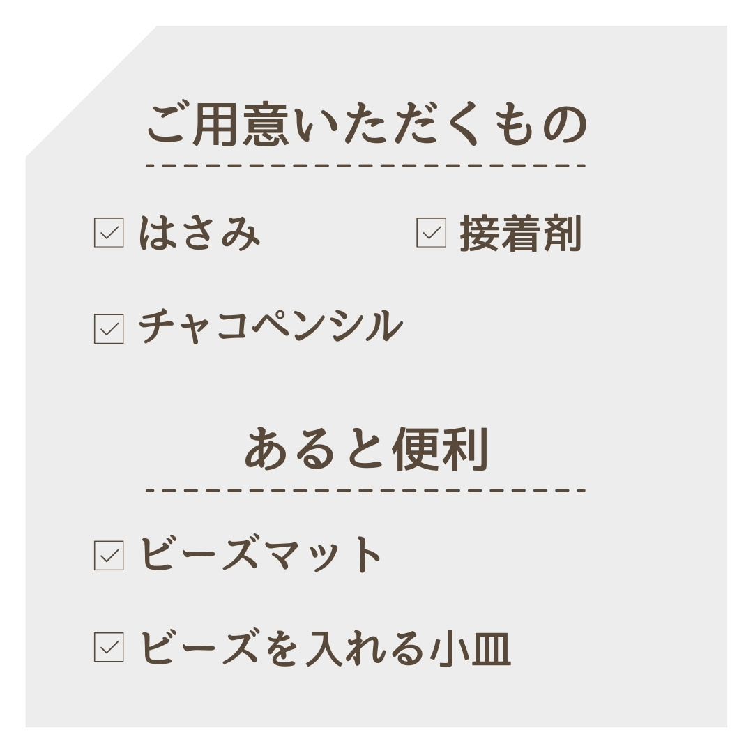 「ビーズ刺しゅうキットの基本レシピ」では、ビーズの種類から基本の刺し方、きれいに刺すコツまで、イラスト入りでていねいに解説しました。むずかしい手順は動画で確認して、わからないところをひとつひとつ解消しながら作り進められます。
