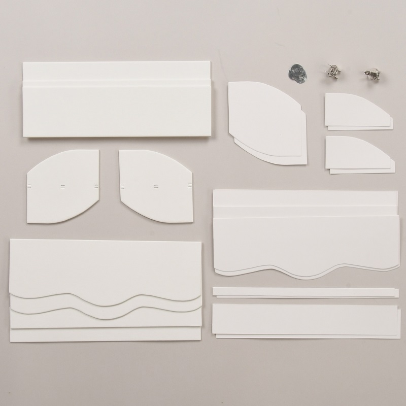 白カルトン2mm5枚、白カルトン1mm4枚、ケント紙16枚、マグネットホック2個、作り方レシピ