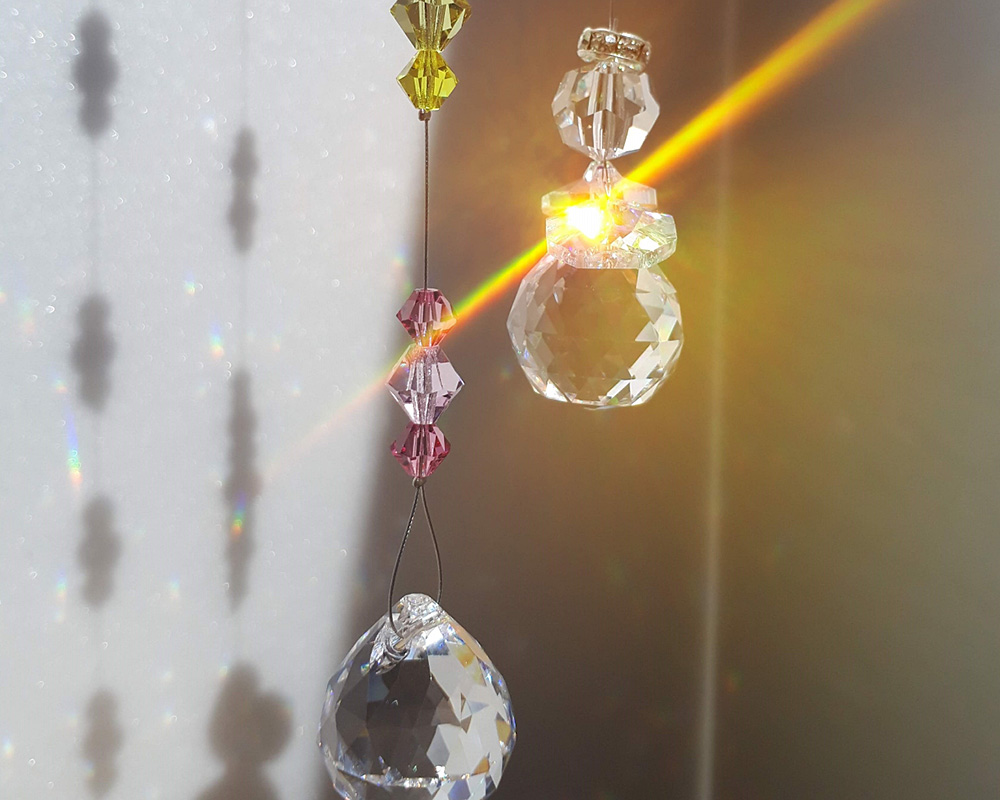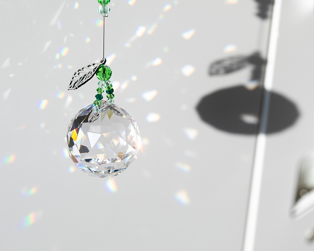 太陽の光をお部屋にたくさんの小さな虹として運び込む、お部屋のアクセサリーのことです。レインボーメーカーとも呼ばれ光のインテリアアクセサリーとして人気があります。太陽の光があたるとお部屋に虹と幸せを運ぶとも言われ、ドリームキャッチャーと同様にお守りとしても有名です。