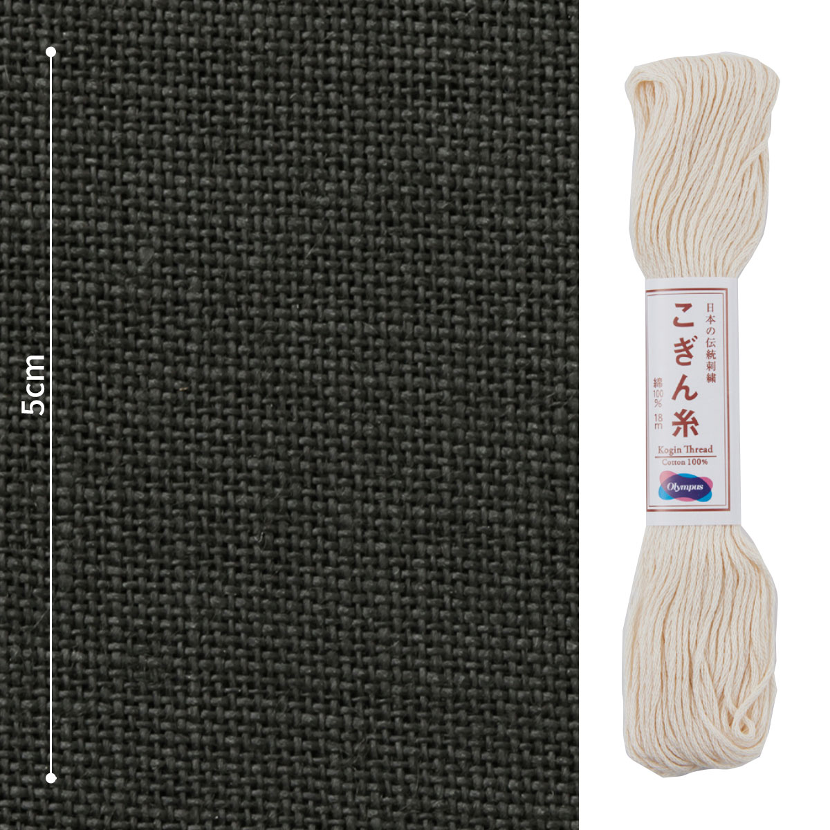 リネンクロス=麻100%、こぎん糸=綿100%