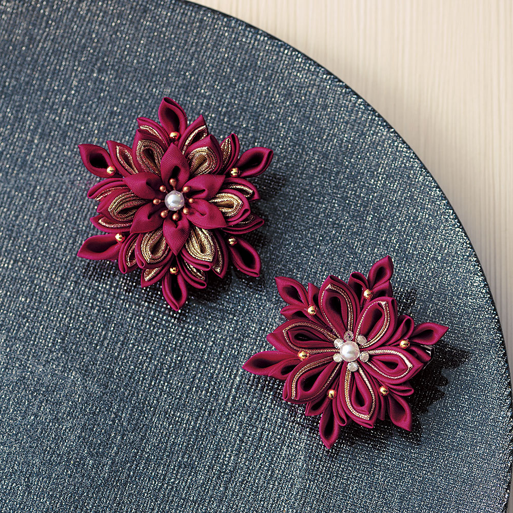 モダンにおでかけつまみ細工ブローチ(ボルドー)