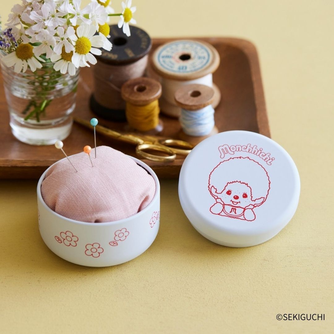 マットな白のベースに、モンチッチらしい赤のイラストが映えて、 いつでもそばに置いておきたいかわいさ! 丸みのある形がかわいい手のひらサイズのミニ缶です。 おまけの生地とわた入りなので、ピンクッションにして缶に入れて使うことができます。 きゅっきゅっと詰めれば、ちくちくシーンを彩る主役アイテムになりそう♪