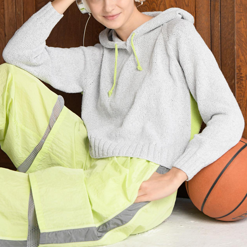 スポーツウエアを普段のファッションに取り入れるアスレジャー。着こなしやすいベーシックなフードつきパーカは、ショート丈にして活動的に。キレイなカラーをポイントにした、スウェット風のデザインがカッコいい!
